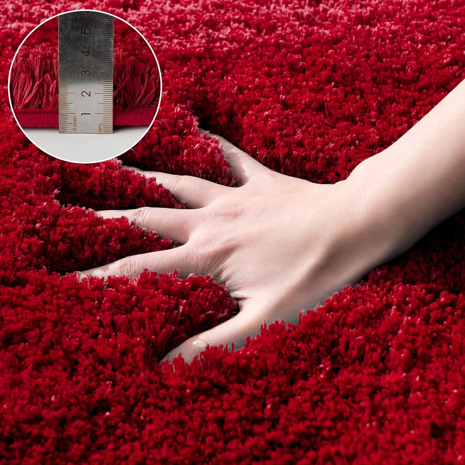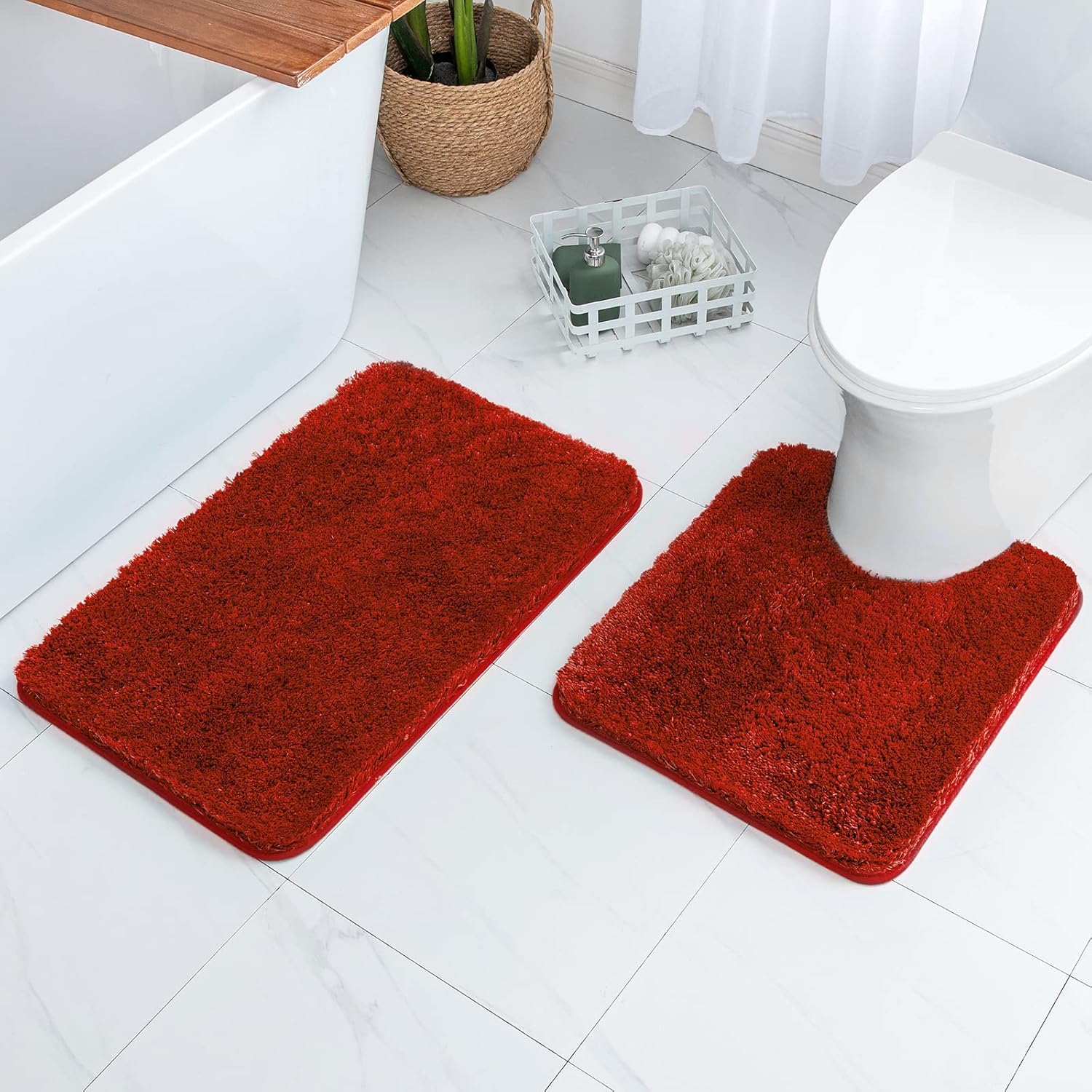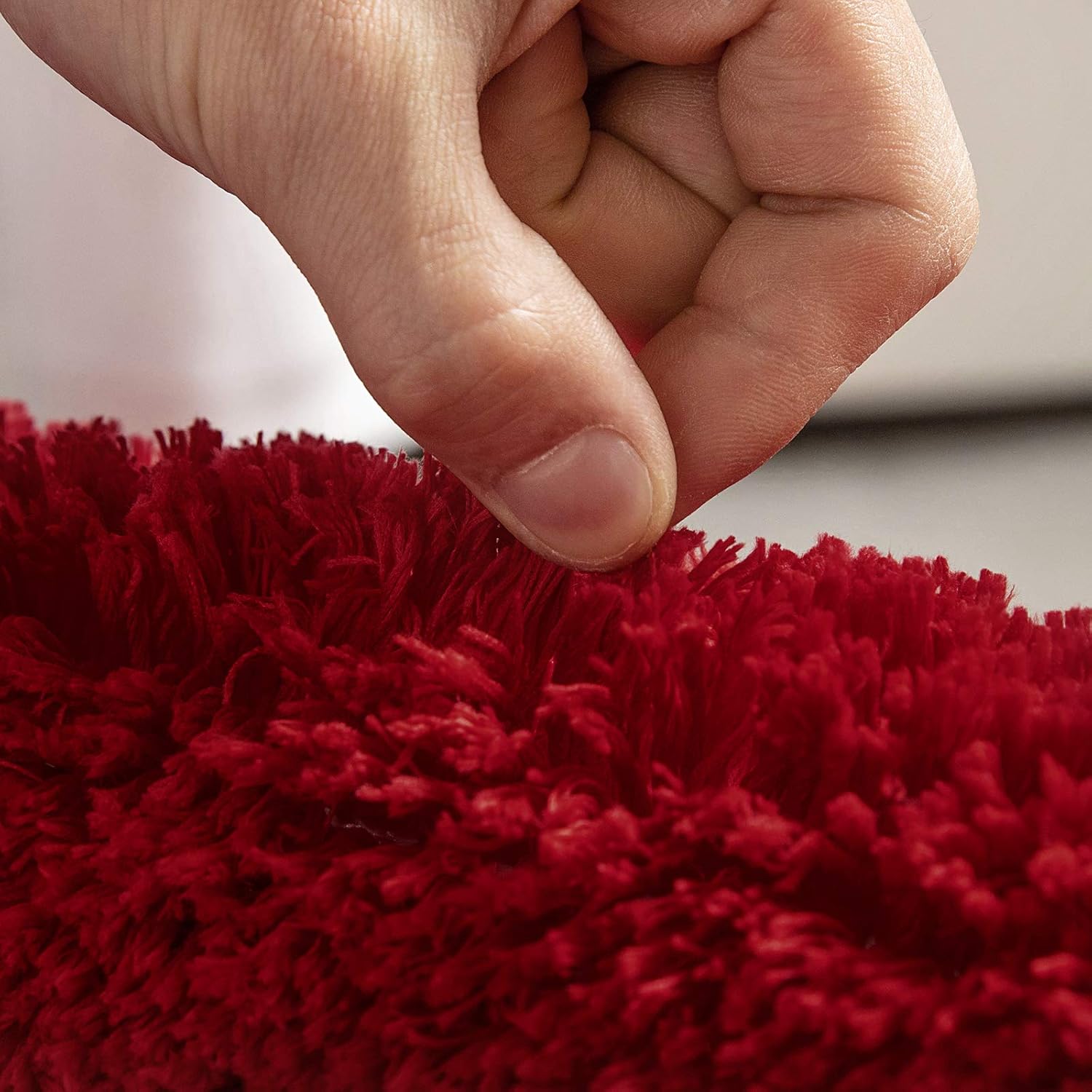 MIULEE Постелка за баня, Мека постелка за баня, U-образна декоративна постелка, Неплъзгаща се изтривалка за врата Пухкав килим, Переща се постелка за баня, Килим за баня за тоалетна, Тоалетна, Баня, 50 x 50 см, Червена