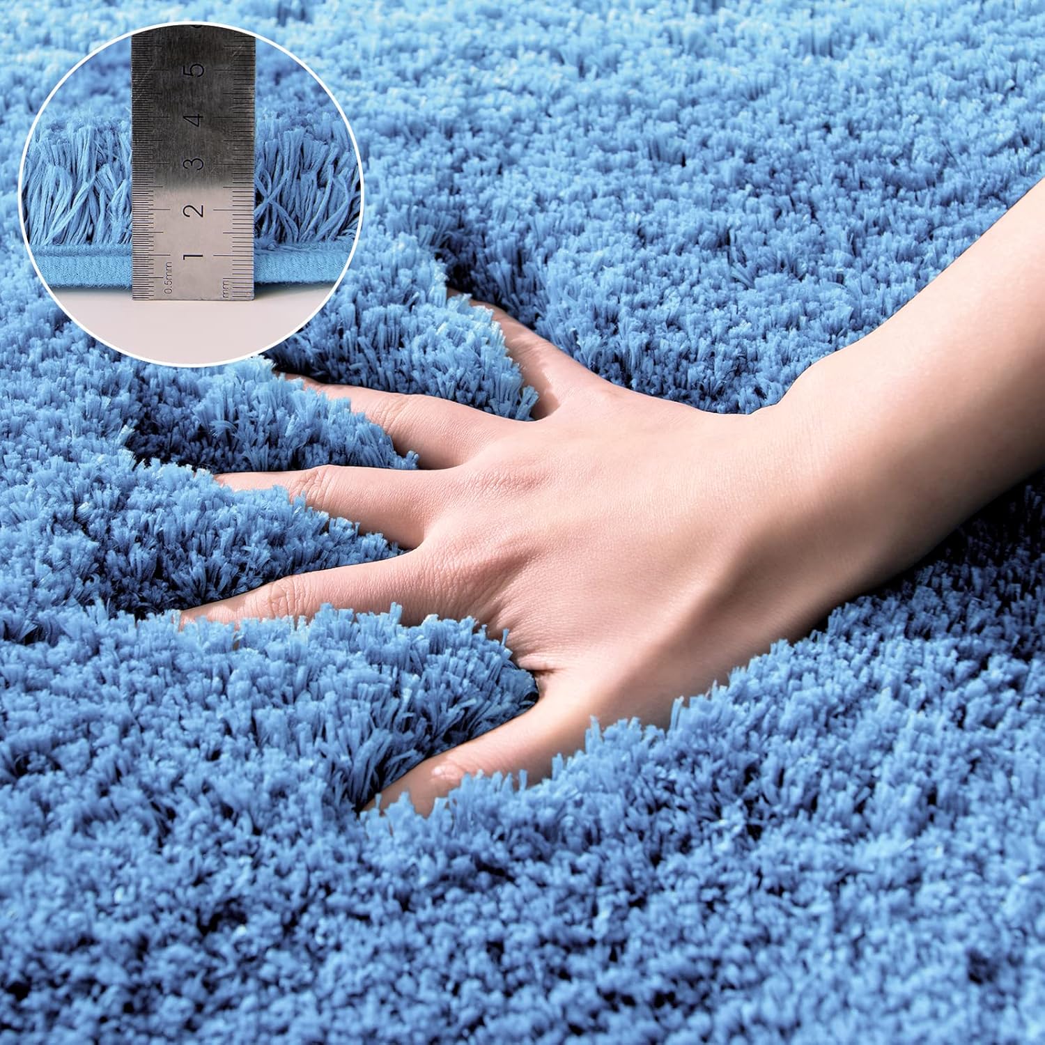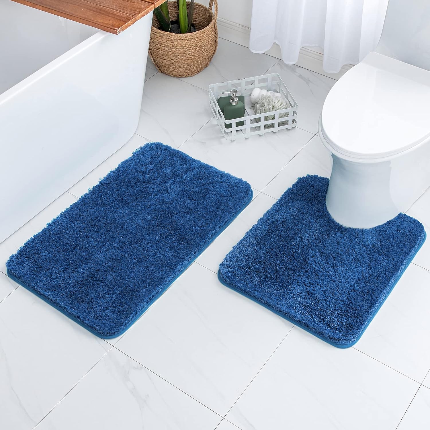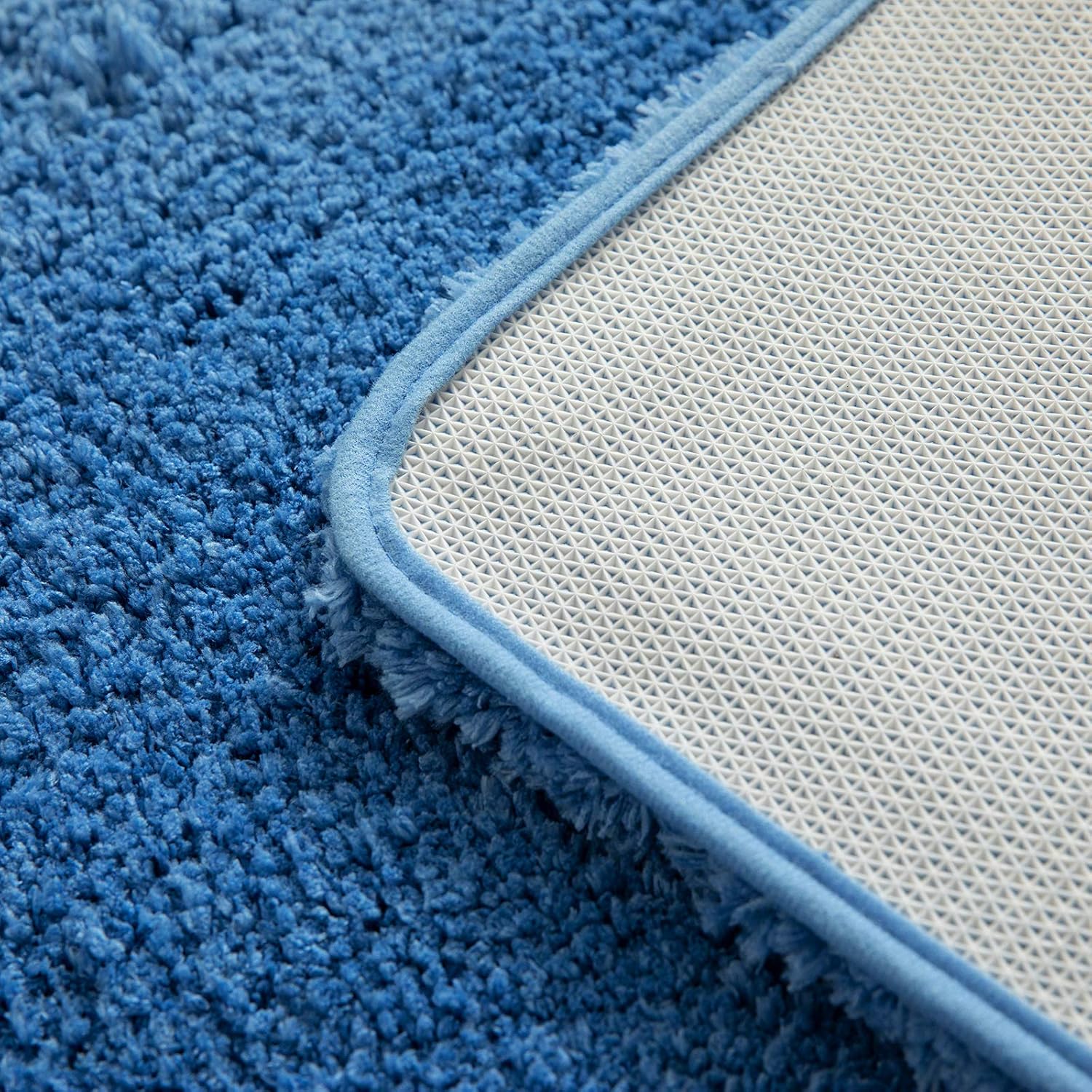 MIULEE Постелка за баня, Мека постелка за баня, U-образна декоративна постелка, Неплъзгаща се изтривалка за врата Пухкав килим, Переща се постелка за баня, Килим за баня за тоалетна, Тоалетна, Баня, 50 x 50 см, Син