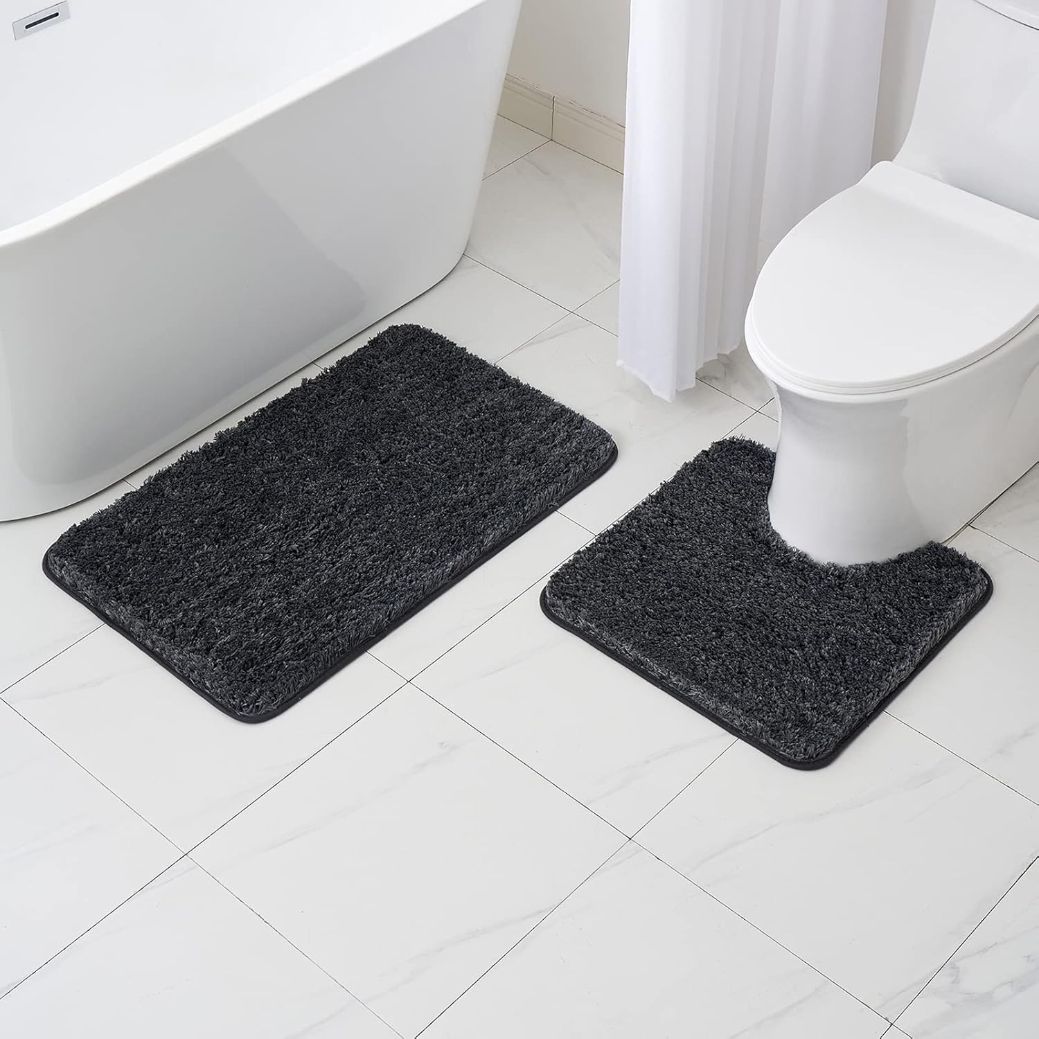 MIULEE Постелка за баня, Мека постелка за баня, U-образна декоративна постелка, Неплъзгаща се изтривалка за врата Пухкав килим, Переща се постелка за баня, Килим за баня за тоалетна, Тоалетна, Баня, 50 x 50 см, Тъмно сиво