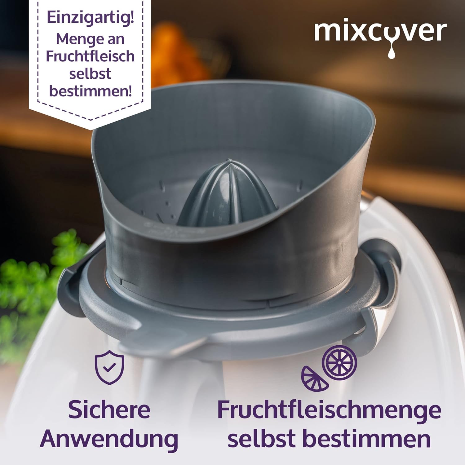 • Безопасно: Сокоизстисквачката се поставя на традиционния капак на TM и е безопасна за вашите ръце и кантара на TM.
