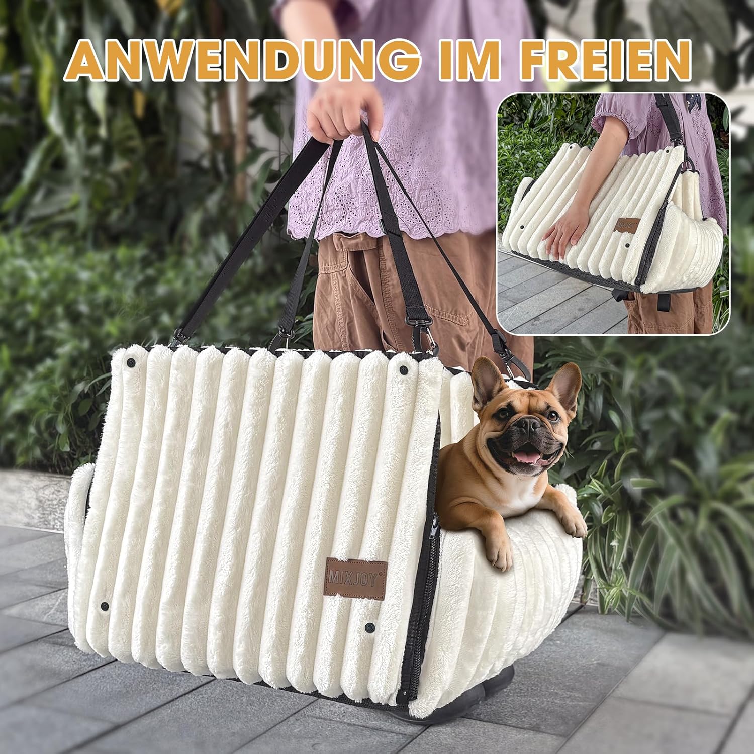 MIXJOY Столче за кола за малки до средни кучета, каишка, която може да се пере, пълнеж от удебелена мемори пяна, легло за кола за задна и предна седалка, бежово