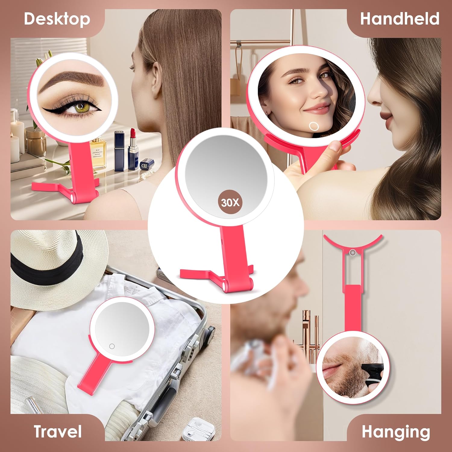 • Двустранно огледало: тази двустранна ръчна лупа е оборудвана с огледала с 1X и 30X, така че можете да използвате подходящото огледало за различни нужди, сякаш получавате две огледала на цената на едно.