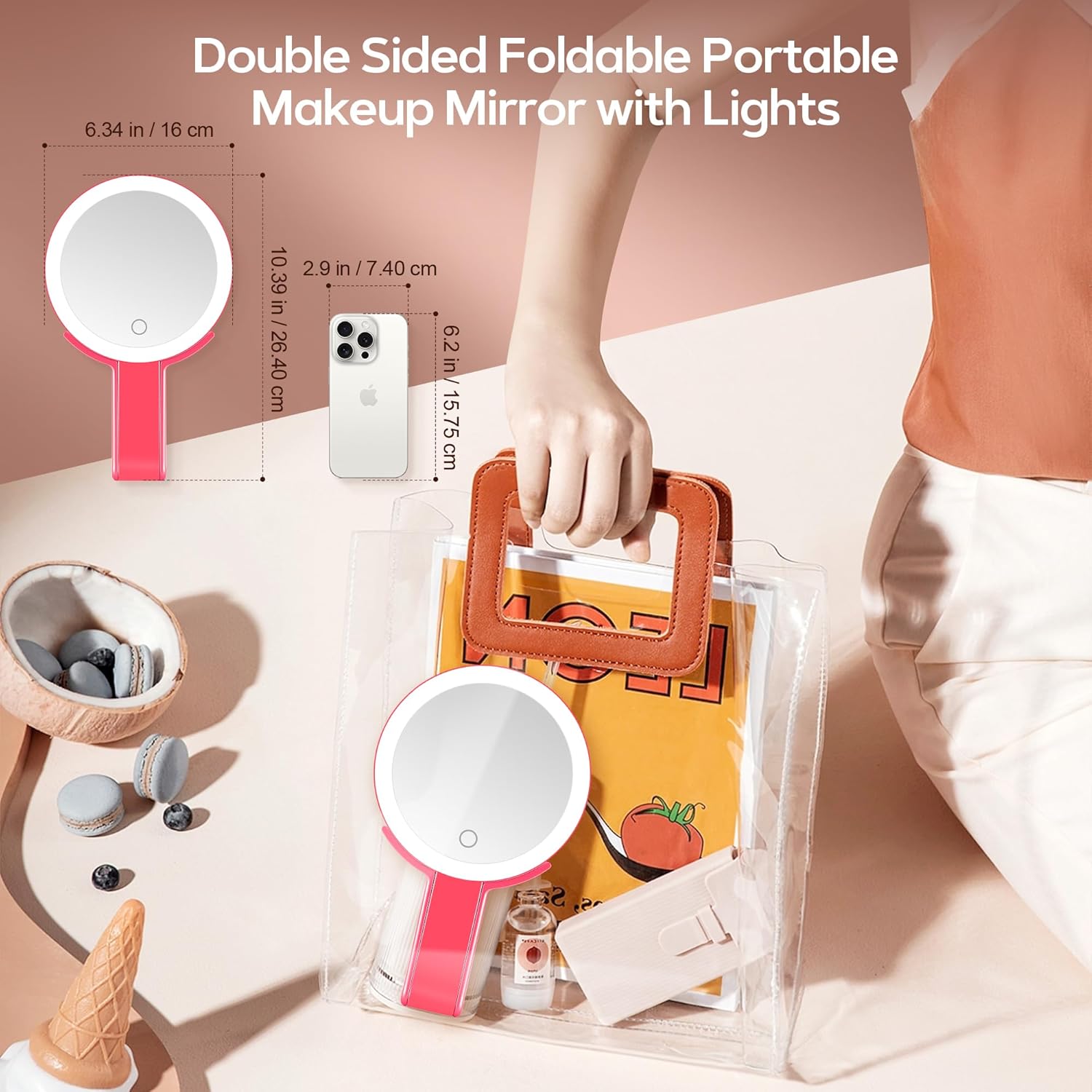 • Преносимо и компактно: огледало за пътуване с перфектен размер. Разгънат размер: 24,3 см x 14,7 см, сгънат размер: 14,7 см x 14,7 см, тегло 180 грама, това преносимо двустранно увеличително огледало може лесно да се побере в чантата и куфара ви.