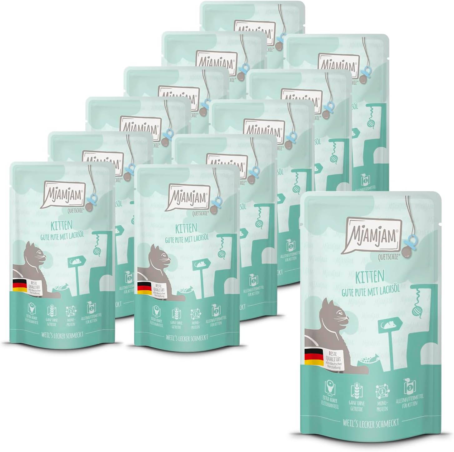 MjAMjAM - Премиум мокра храна за котки - Kitten good пуешко с масло от сьомга, пакет от 6 бр. (6x400 г), без зърнени култури