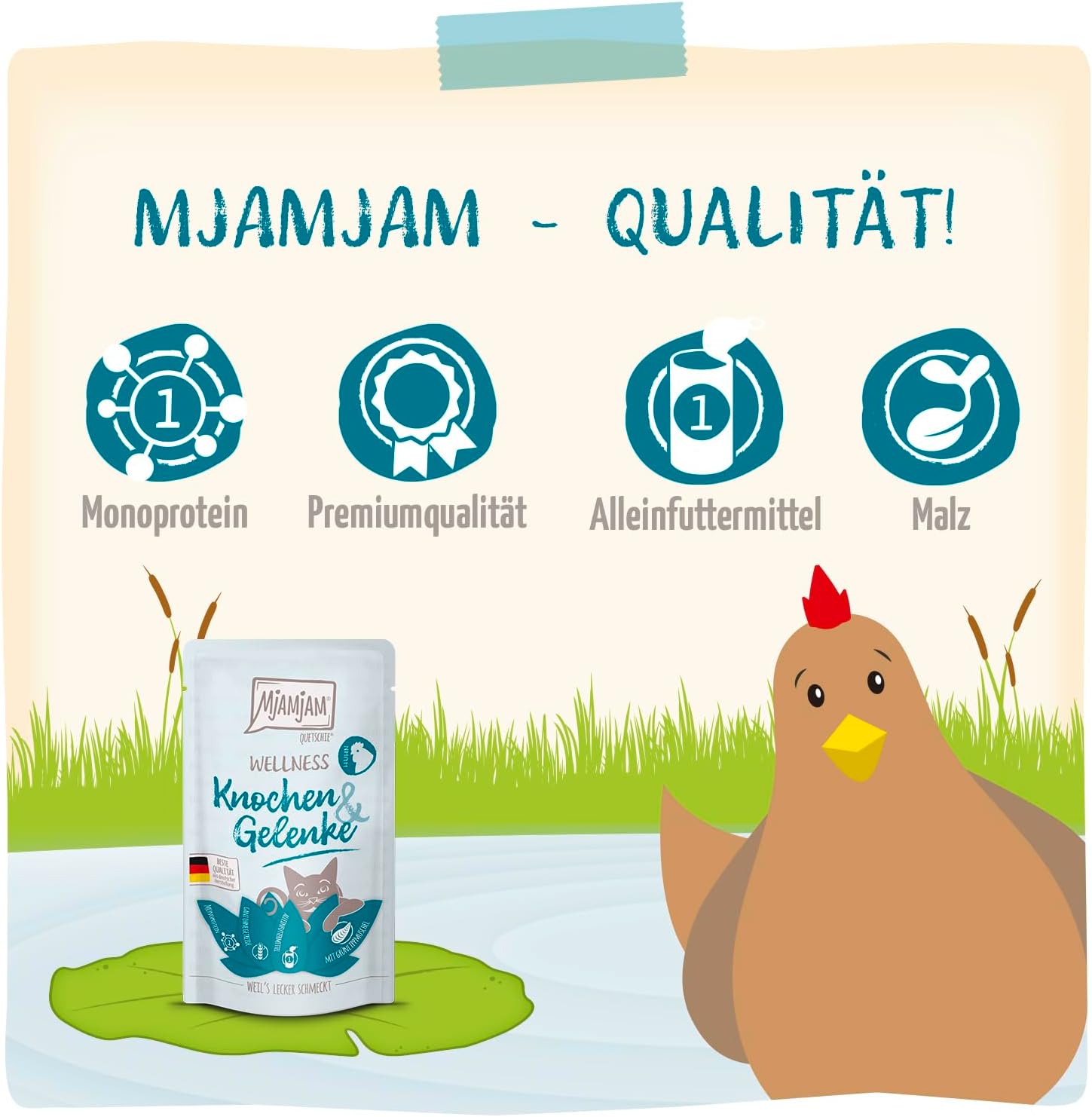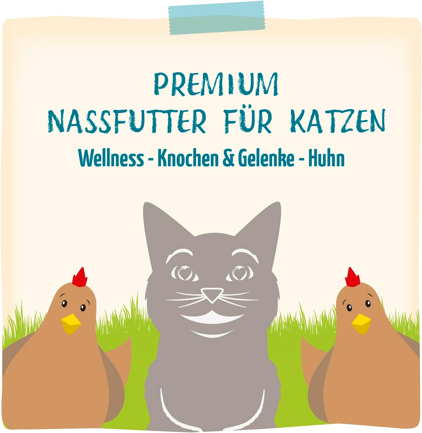 Пилешко против образуване на космени топки: Пилешко месо, сърца, воденички, черен дроб, шийки и мазнина 67%, месен бульон 29,3%, малц 1%, масло от сьомга 1%, минерали 1%, цикория 0,5%, бирена мая 0,2%. Храносмилателно пилешко: Пилешко месо, сърца, воденички, черен дроб, шийки и мазнина 67%, месен бульон 29,8%, масло от сьомга 1%, минерали 1%, цикория 0,5%, бирена мая 0,5%, люспи от псилиум 0,2%. Кожа и козина Пилешко: Пилешко месо, сърца, воденички, черен дроб, шийки и мазнина 67%, месен бульон 30%, морско масло 1%, минерали 1%, цикория 0,5%, бирена мая 0,5%. Пилешки кости и стави: Пилешко месо, сърца, воденички, дробчета, шийки, мазнини 67%, месен бульон 30,1%, масло от сьомга 1%, минерали 1%, бирена мая 0,5%, зеленоуста мида 0,4%.