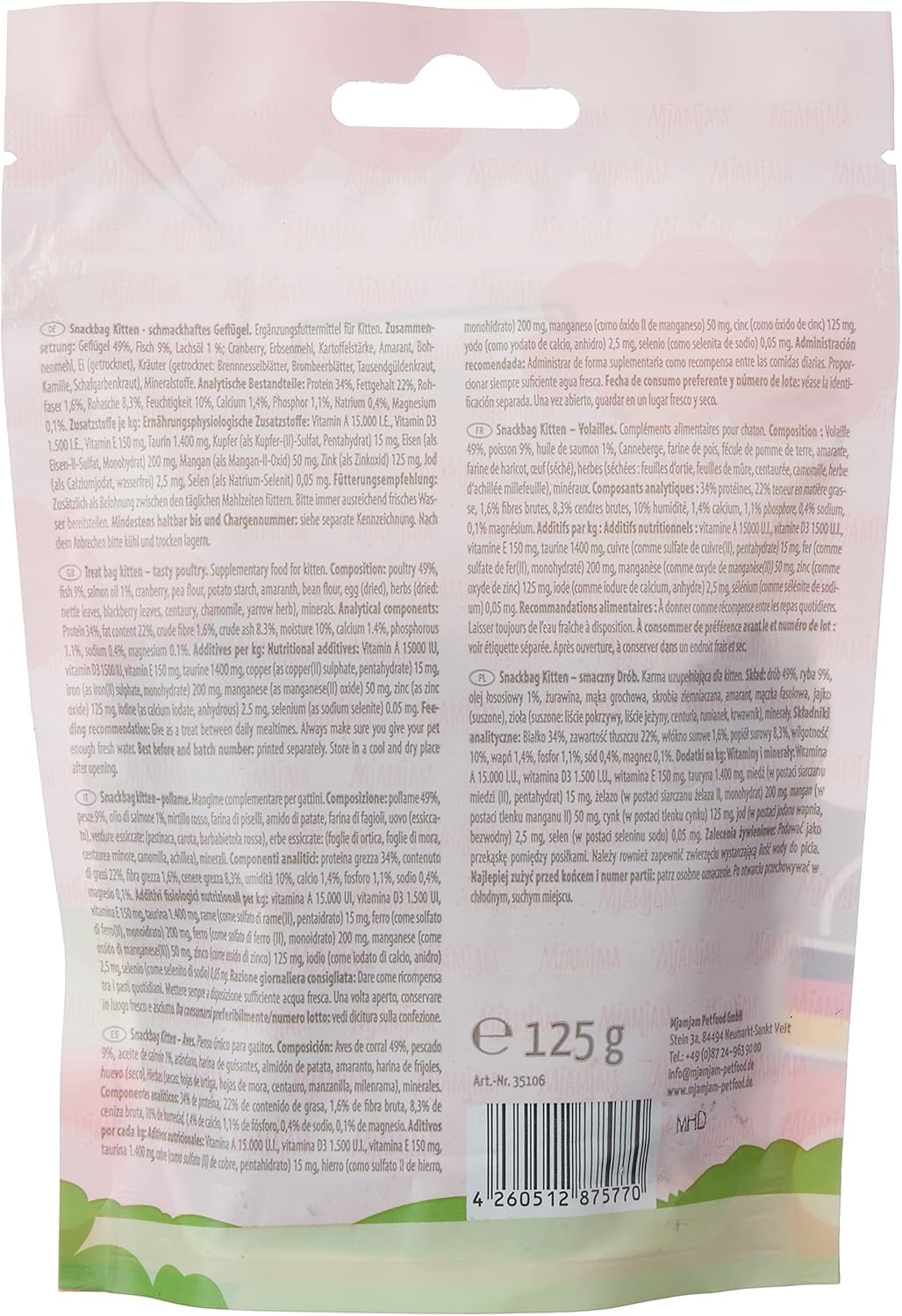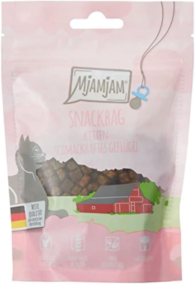 MjAMjAM - Премиум закуска за котенца - Торбичка със закуска - Вкусно птиче месо за котенца, 1 опаковка (1 x 125 г), изцяло натурална, без синтетични консерванти