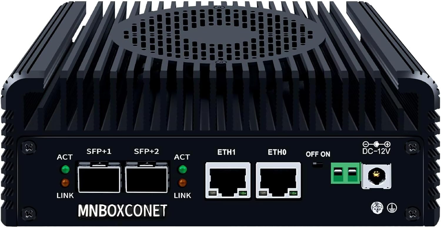 MNBOXCONET S2 Мини компютър N355 2x10gb SFP+, хардуер за защитна стена, микро офис, Barebone без RAM без SSD, 2x226V 2.5Gbit LAN, USB C, слот за TF карта, поддръжка на Proxmox OPNsense Win, SPK/MIC