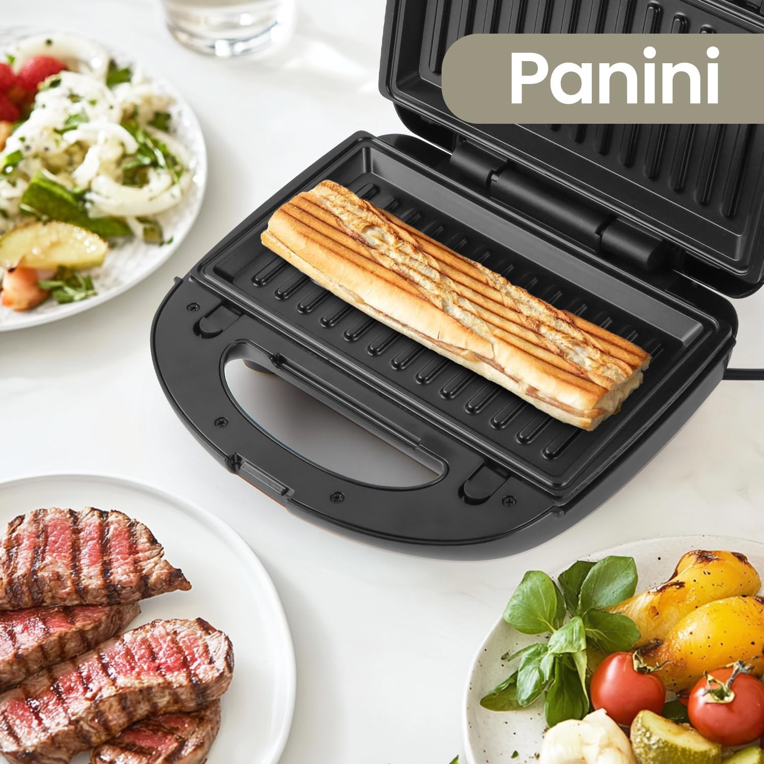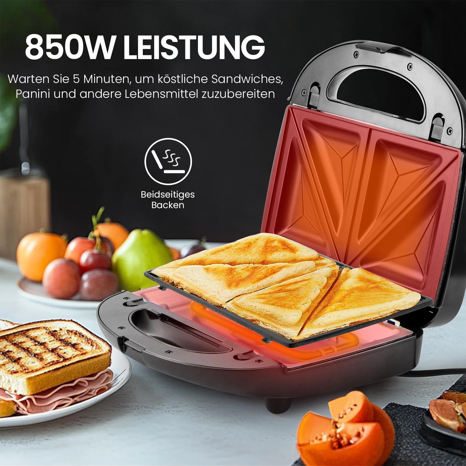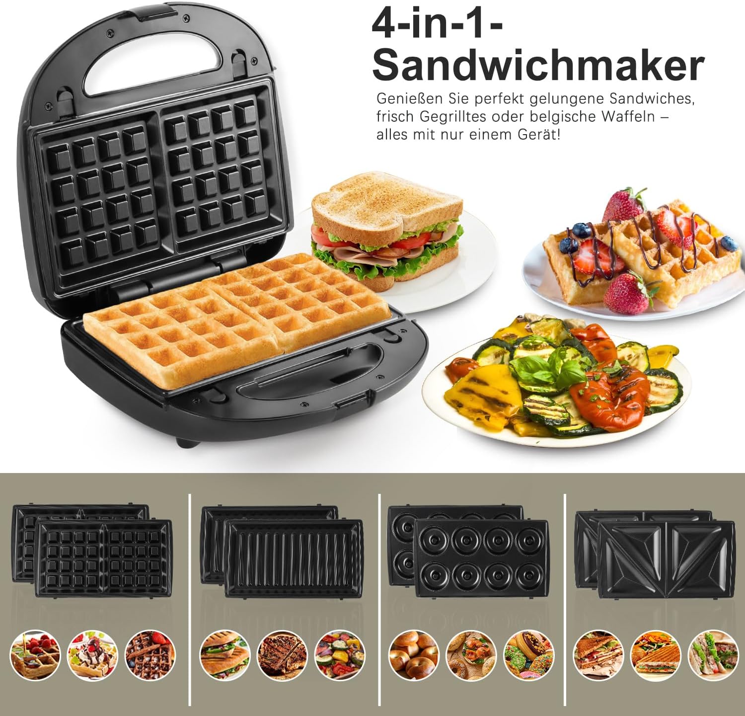 Многофункционален комплект за сандвичи 4 в 1, за тостер за сандвичи, контактен грил, гофретник, кекс, 2 филийки с незалепващо покритие, двустранно печене при постоянна температура, BPA