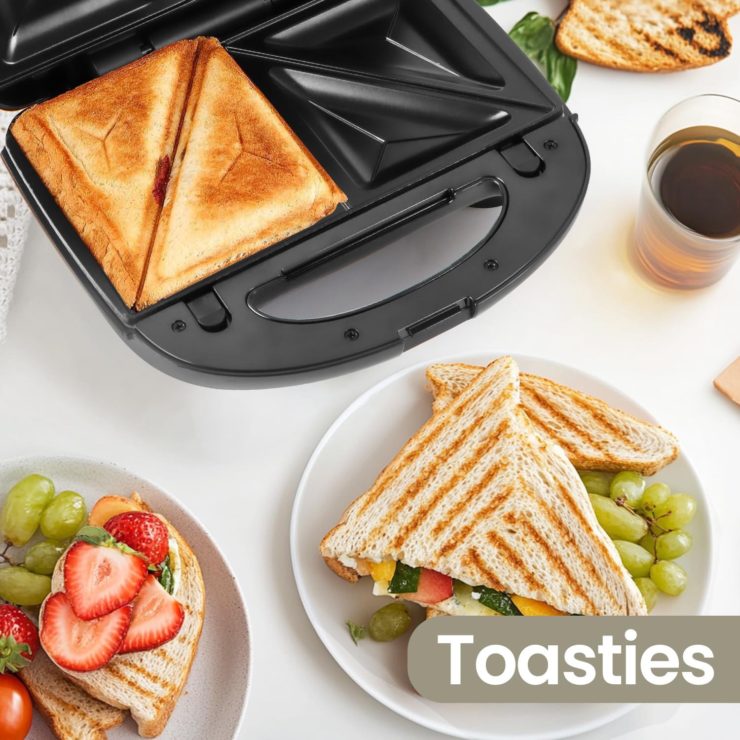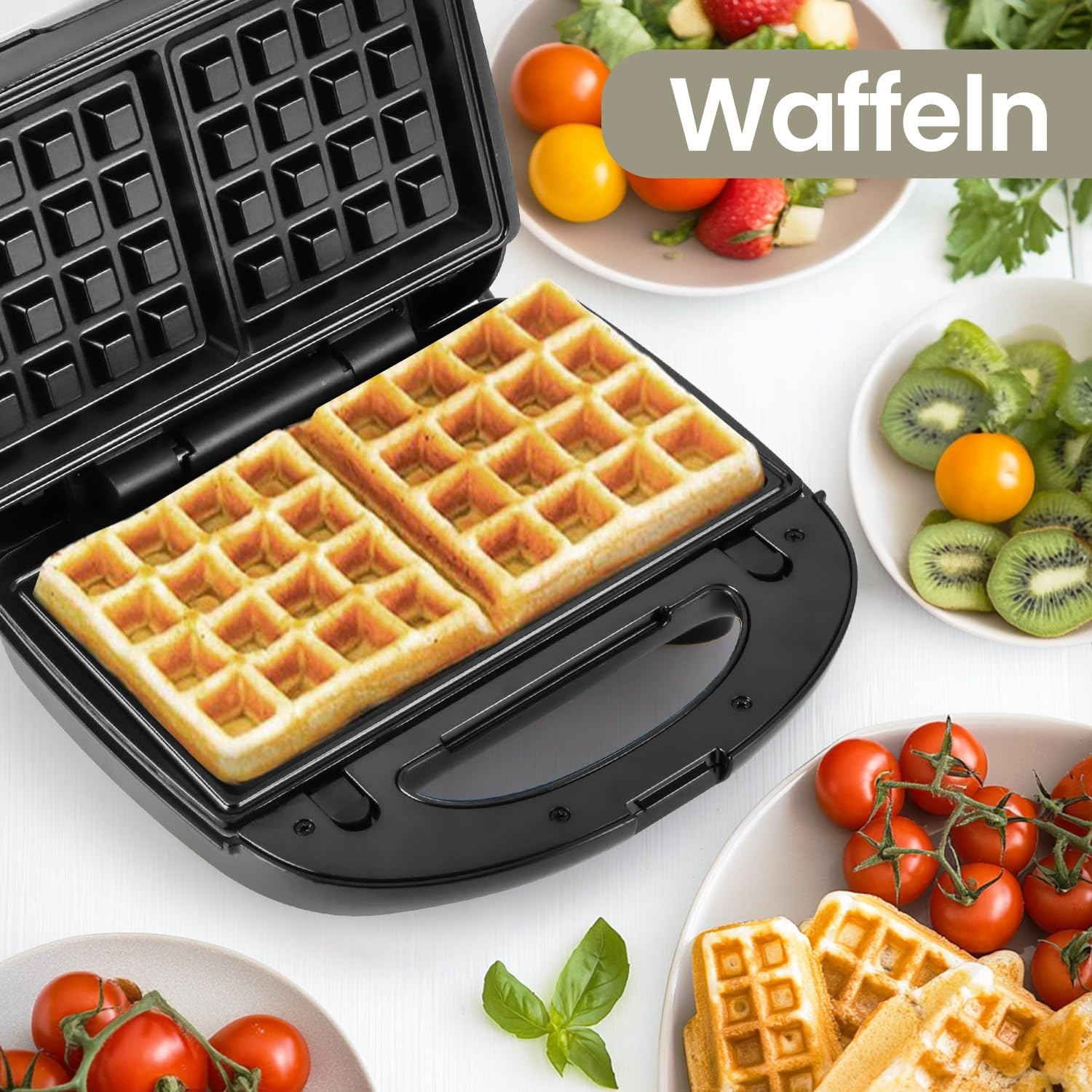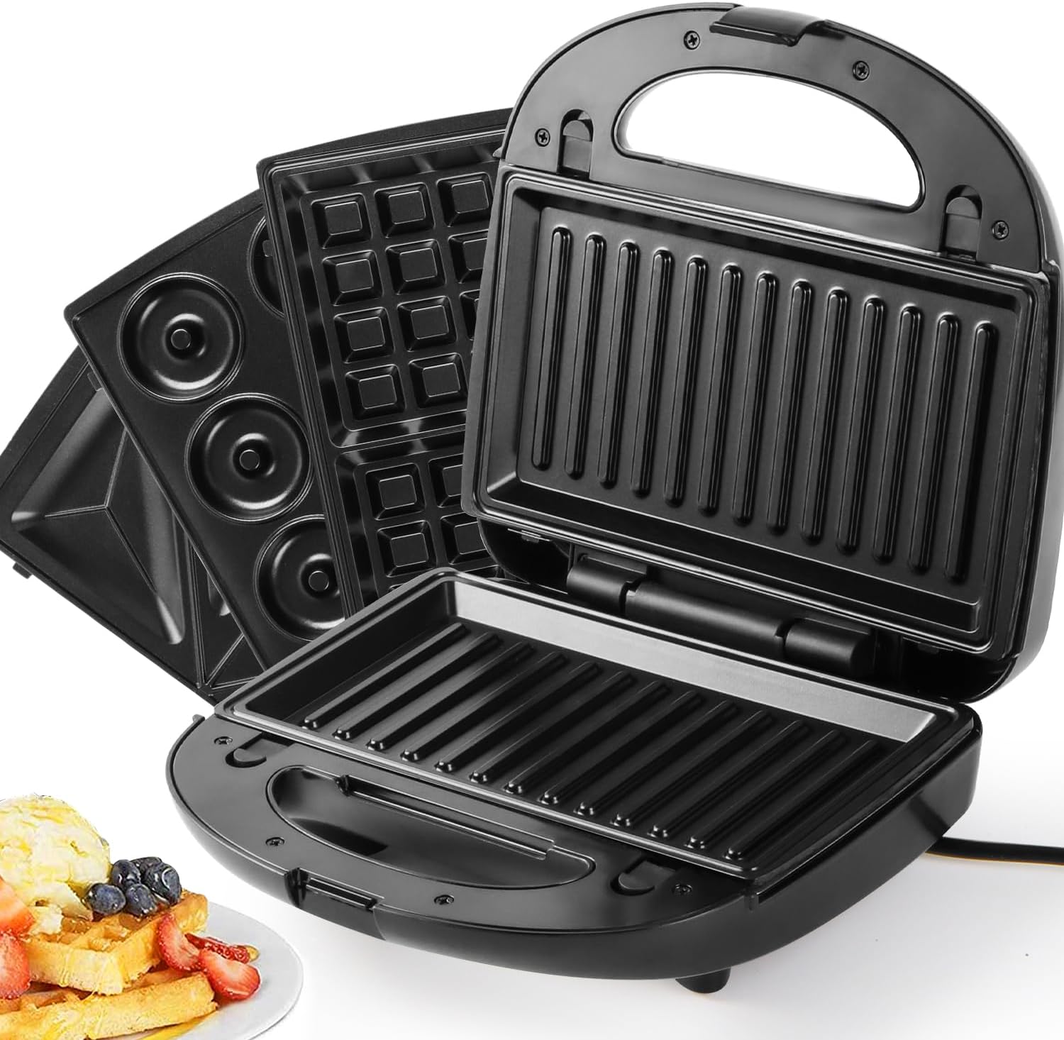 Многофункционален комплект за сандвичи 4 в 1, за тостер за сандвичи, контактен грил, гофретник, кекс, 2 филийки с незалепващо покритие, двустранно печене при постоянна температура, BPA