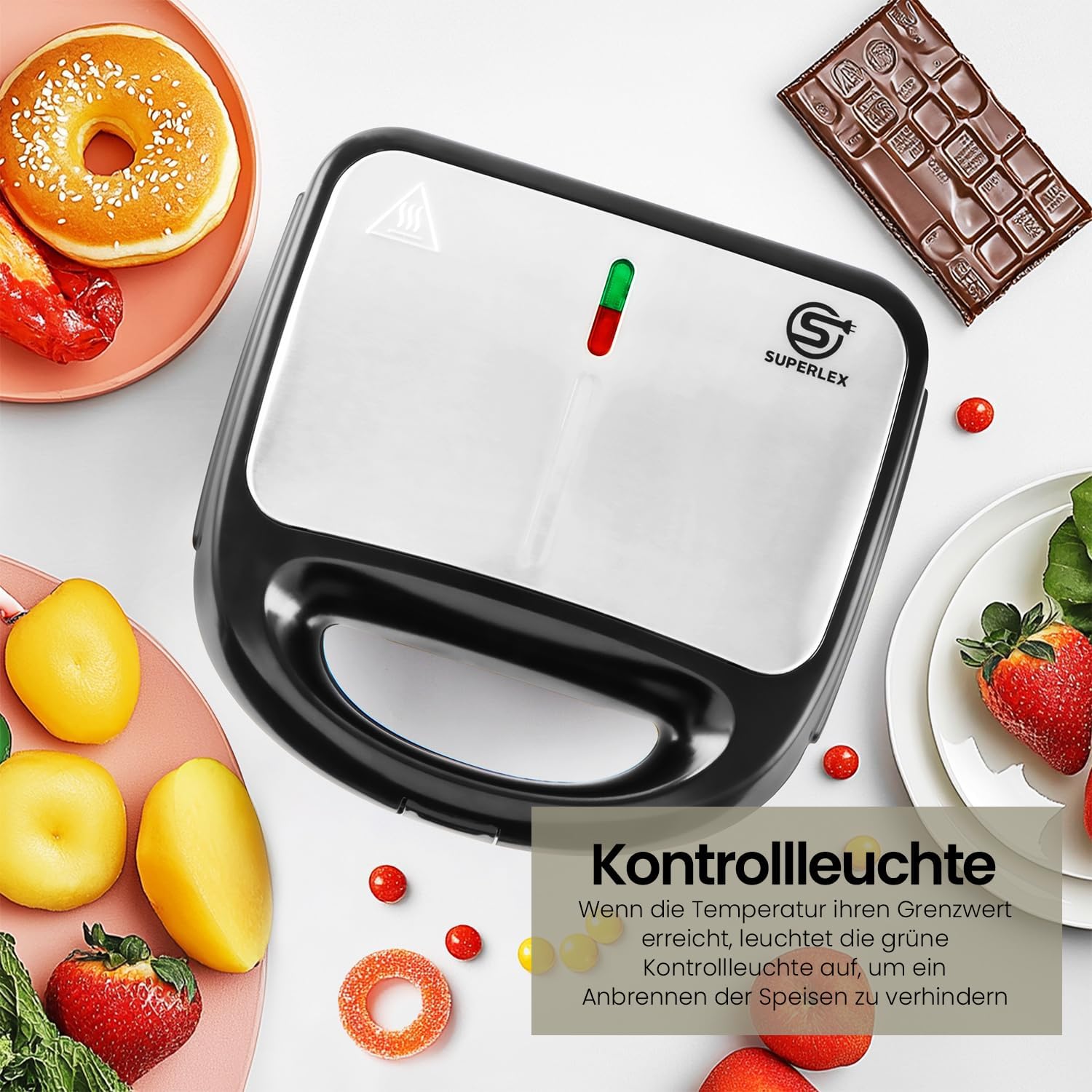 • [Универсален 3-в-1 дизайн] Многофункционалният гофретник SUPERLEX е оборудван с три сменяеми плочи, които ви позволяват да приготвяте гофрети, понички, омлети и други. Независимо дали става въпрос за хрупкави гофрети или солени понички, това устройство ще отговори с лекота на всички ваши кулинарни нужди.
