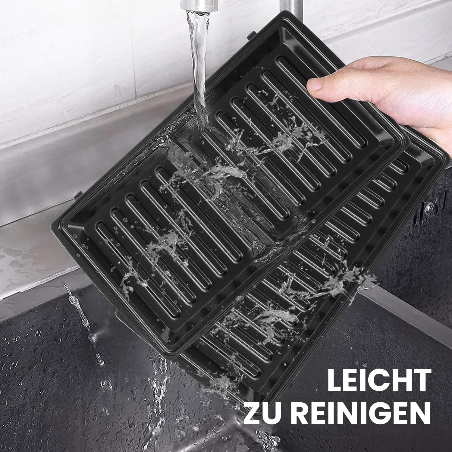 • [Безпроблемно незалепващо готвене] Насладете се на безпроблемно готвене с незалепващото покритие, което ви позволява лесно да изваждате гофретите си и да ги почиствате с обикновено избърсване. Подвижните плочи са подходящи за съдомиялна машина, така че почистването е изключително лесно и имате свободни ръце за още по-приятни дейности. Този гофретник е проектиран да опрости готвенето ви, като същевременно насърчава по-здравословен начин на живот.