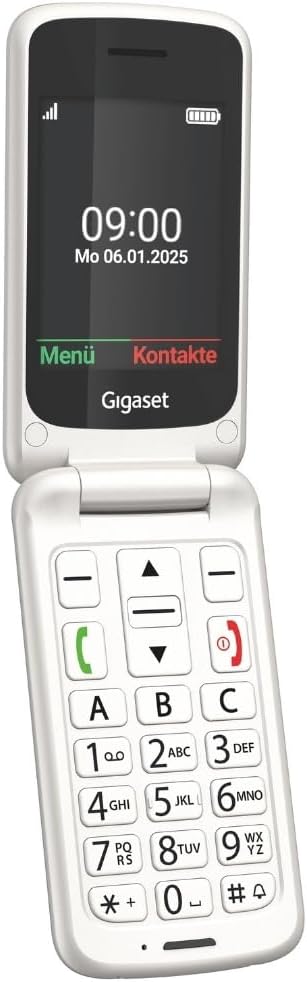 Открийте мобилния телефон Gigaset GL595 2G с разгъващ се капак: С големи бутони, лесен за четене размер на шрифта, практичен IP44 сертификат и три бутона за бързо набиране.