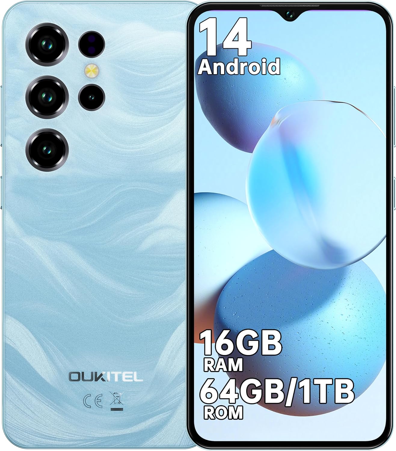Мобилен телефон OUKITEL C2 без договор - Android 14 смартфон без договор 16GB RAM + 64GB ROM / 1TB разширяема, 6.52-инчов HD+ мобилен телефон евтин 5000 mAh батерия, 13MP + 5MP камера, две SIM карти