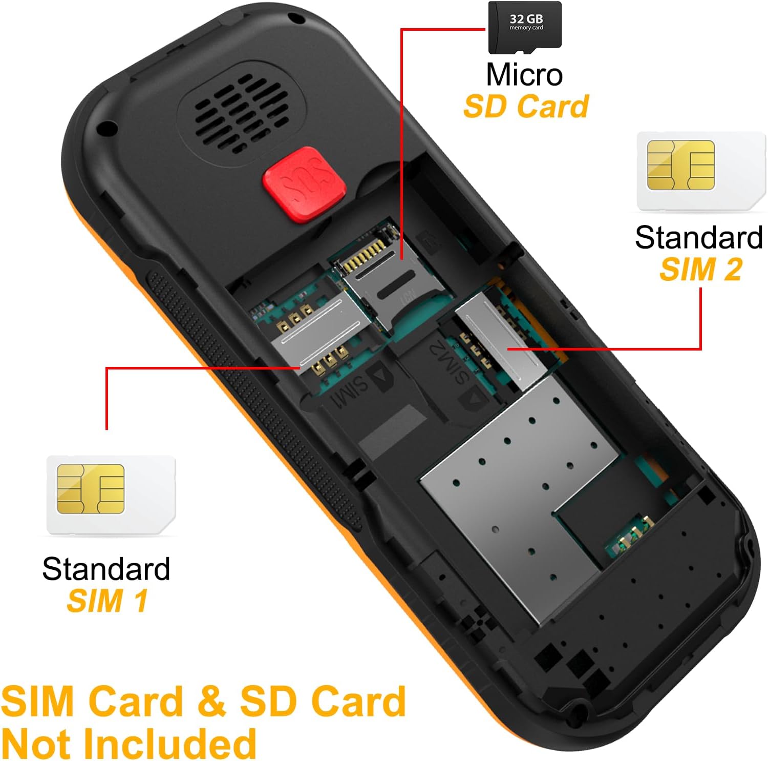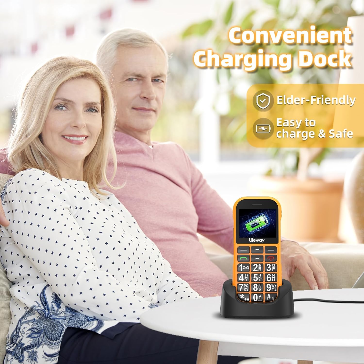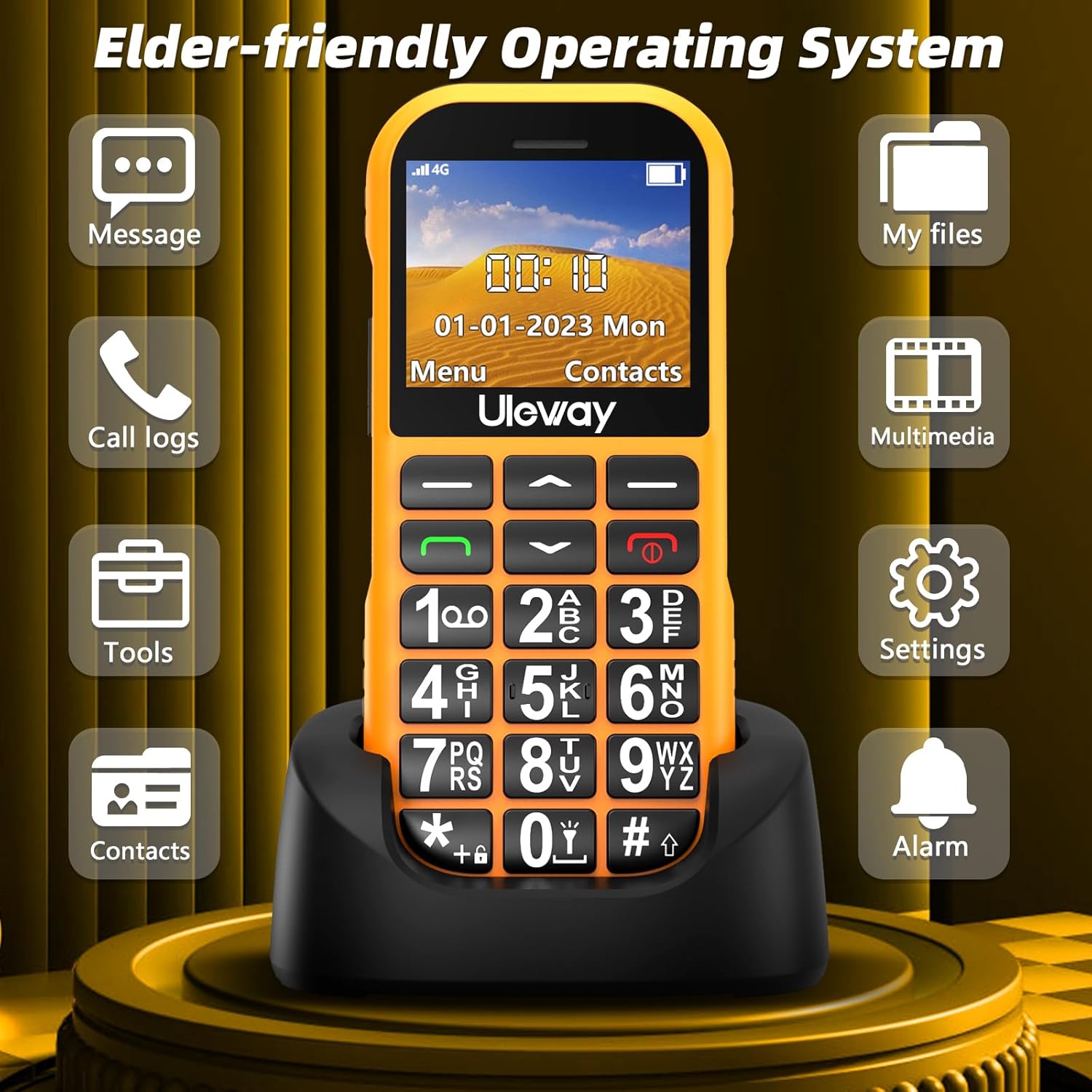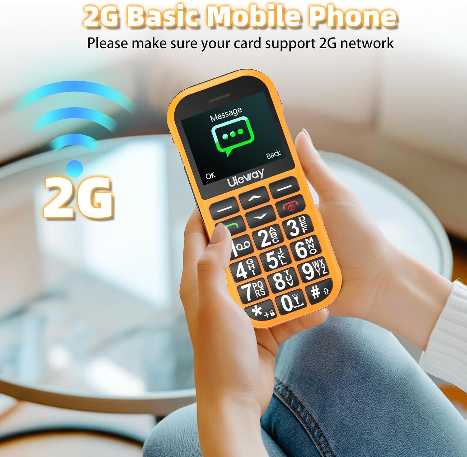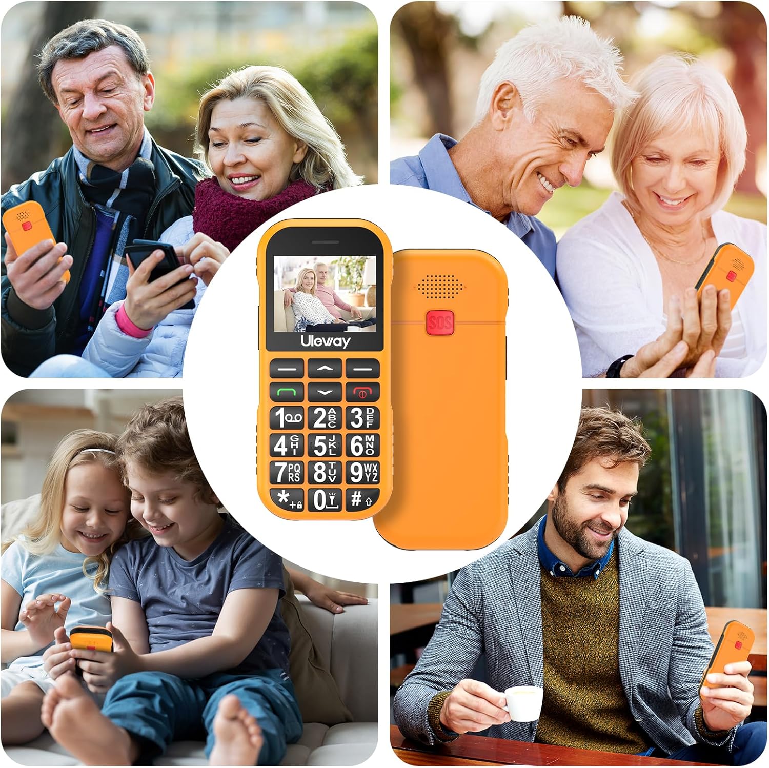 GSM мобилен телефон за възрастни хора: Този обикновен GSM мобилен телефон без договор (не е интелигентен мобилен телефон) е само 2G (не 3G/4G мрежа). Основната му функция е да осъществява повиквания. При мобилните телефони за възрастни хора сложните функции са умишлено пропуснати, за да се улесни работата от възрастни хора/деца.
