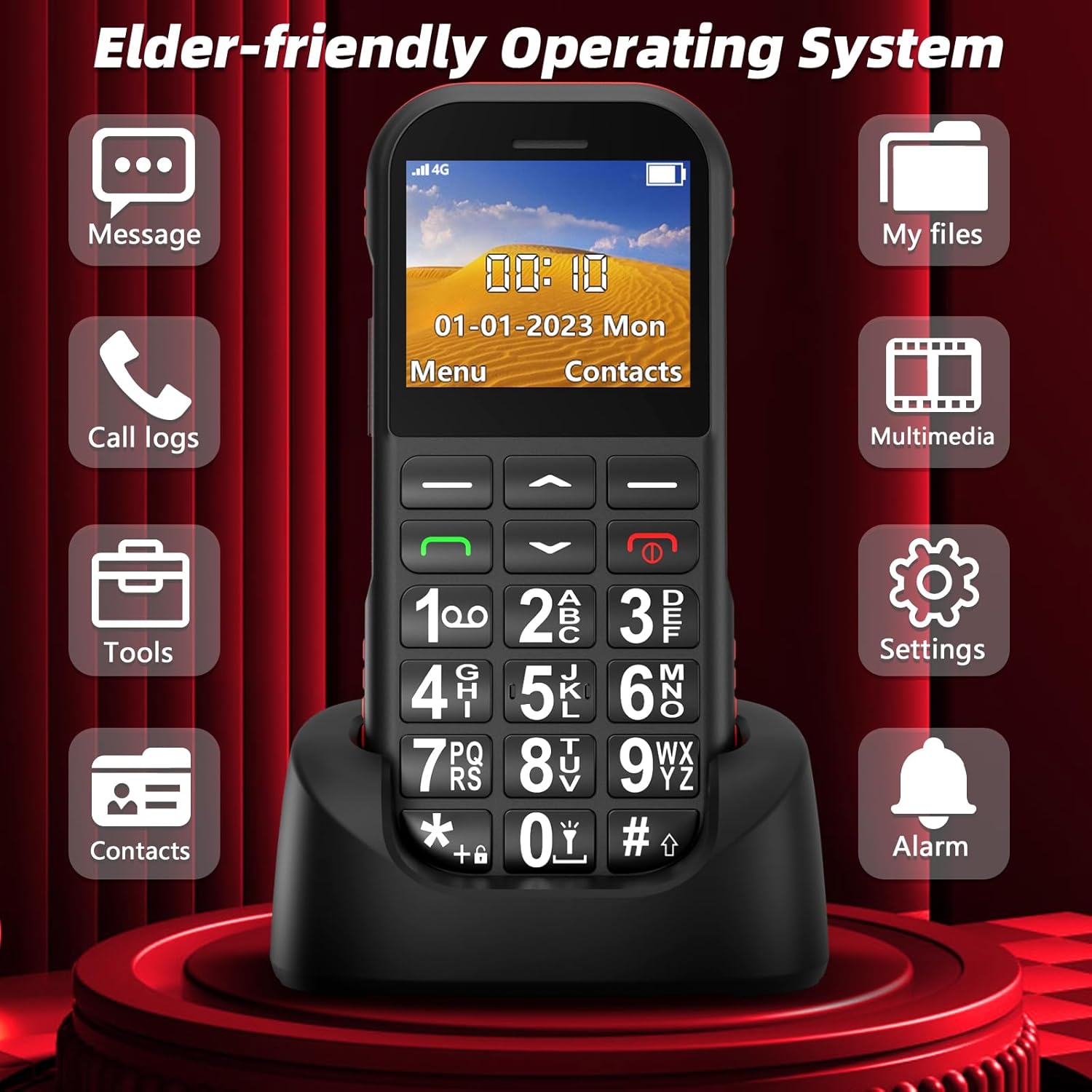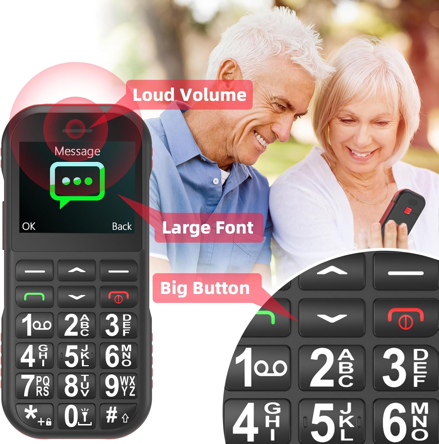 This mobile phone has been specially designed for people with hearing impairments and has a built-in speaker with high volume and clear sound quality, making it particularly suitable for the elderly with hearing problems.