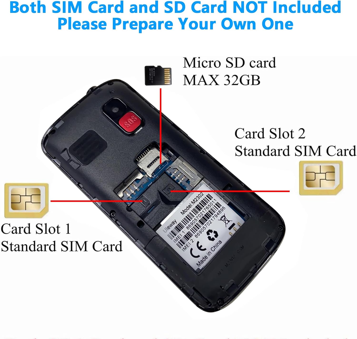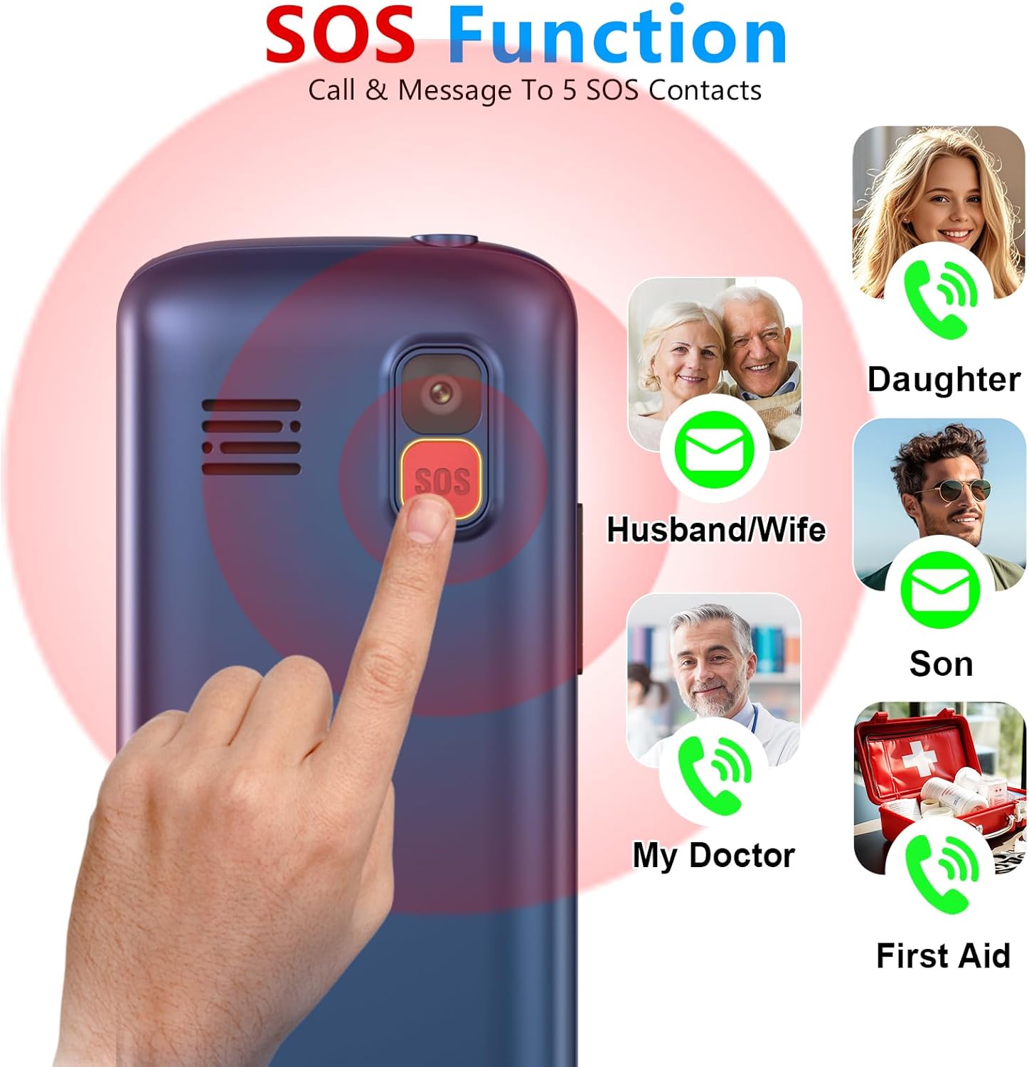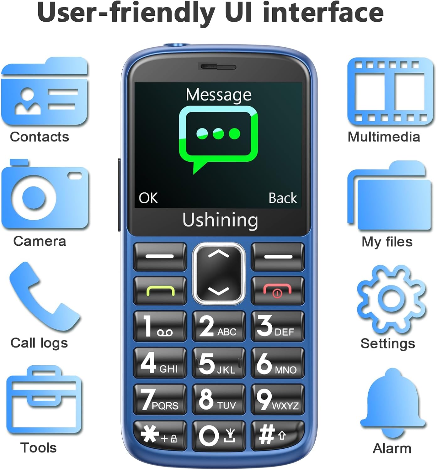 Мобилен телефон за възрастни хора без договор : Има големи бутони за лесно набиране, голям шрифт за по-добра видимост и мощен високоговорител за регулиране на силата на звука.