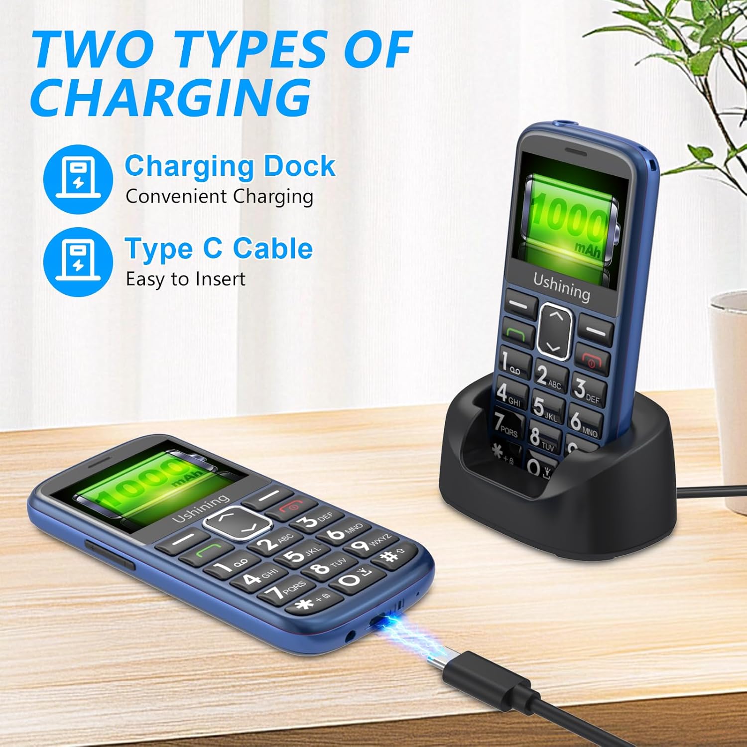 Dieses Mobiltelefon wird mit einer speziell entwickelten Ladestation geliefert. Um es zu verwenden, legen Sie das Telefon einfach zum Aufladen in die Ladestation. Die Bedienung ist äußerst einfach, was es sowohl für ältere Benutzer bequem als auch sicher macht.