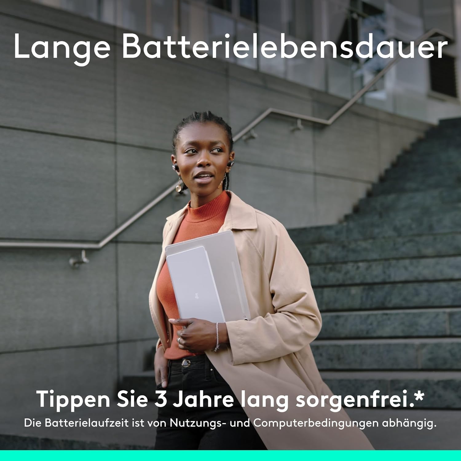 • Тригодишен живот на батерията: Дългият живот на батерията до 3 години осигурява безпроблемно писане; мобилната безжична клавиатура Keys-ToGo 2 е вече оборудвана с включените батерии тип „копче“.