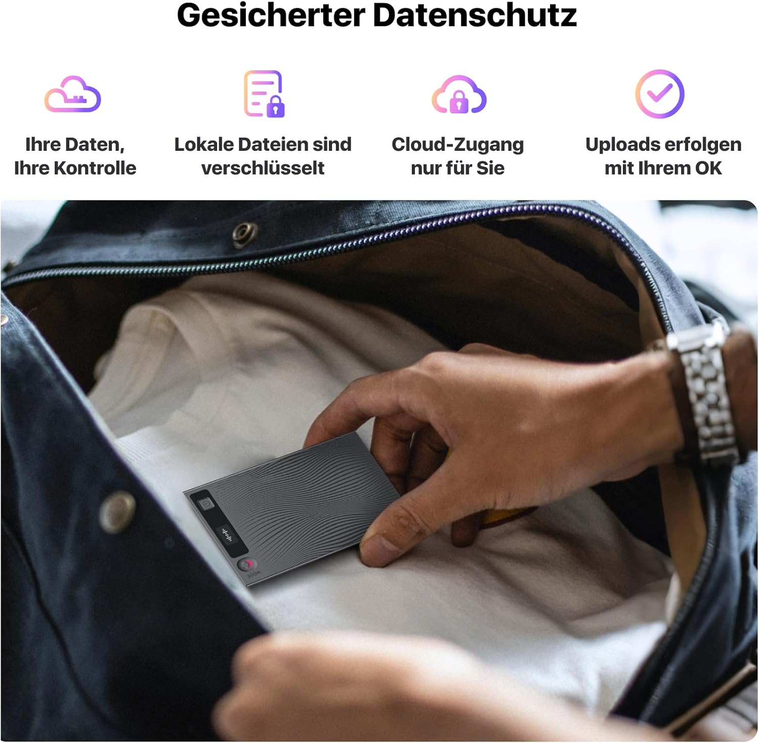 • Защита на данните: Локалните данни са криптирани, облачните файлове принадлежат изключително на вас и обработката на данните се извършва само след вашето разрешение. Предлага се и неограничено облачно съхранение. Можете лесно да управлявате аудио файлове, да сортирате и споделяте записи, транскрипции и резюмета.