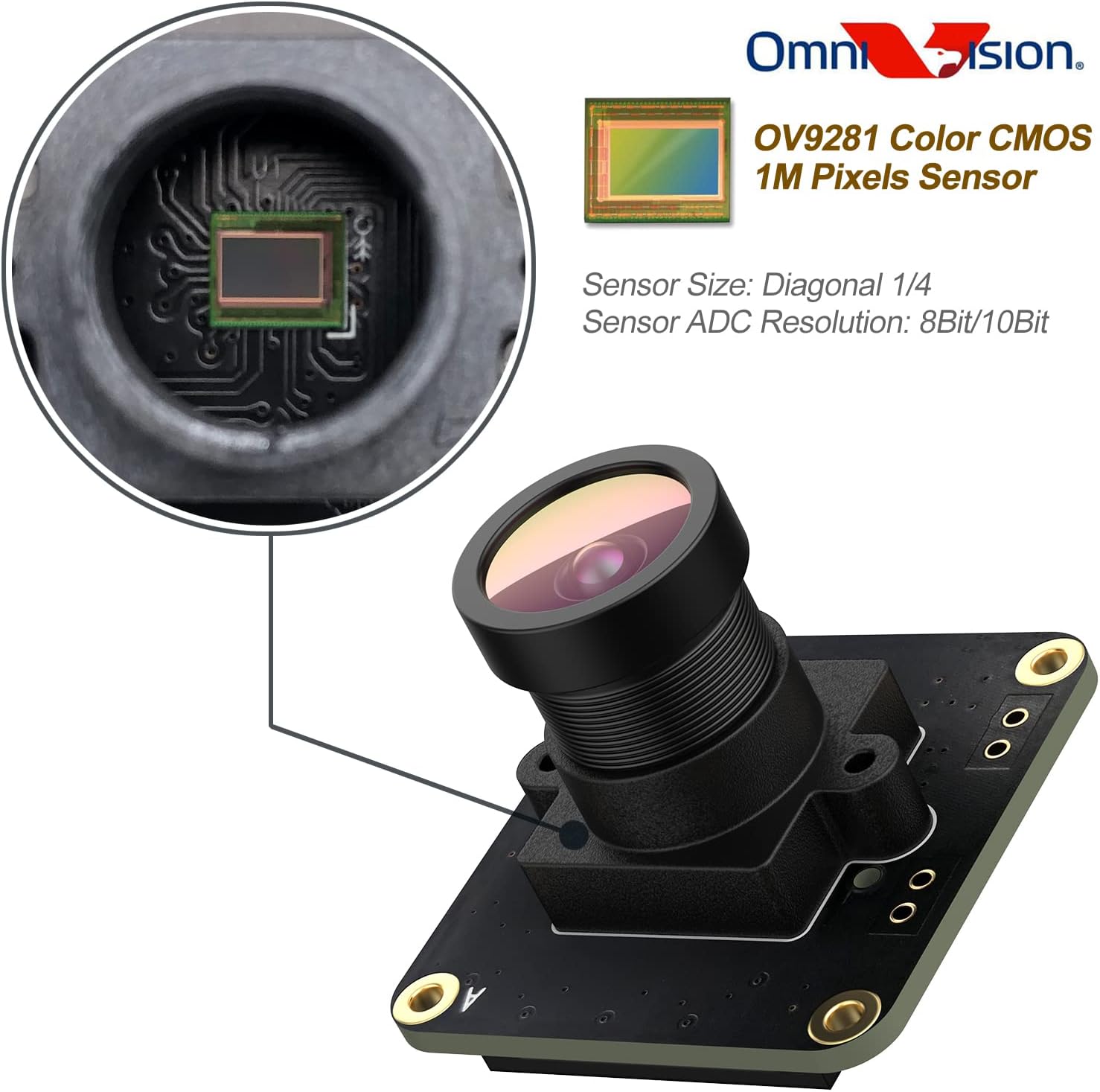 • На борда е монтиран монохромен (черно-бял) CMOS сензор OmniVision OV9281 с 1 мегапиксел. Дизайнът с глобален затвор елиминира размазването от движение и го прави особено подходящ за високоскоростно заснемане на изображения.