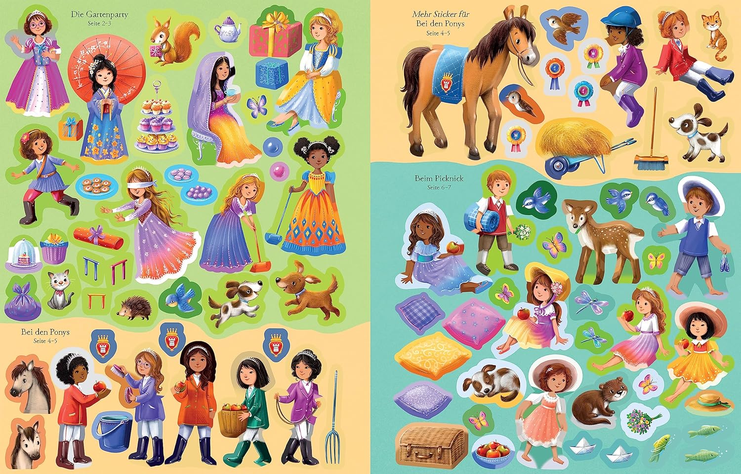 • Потопете се в света на принцесите и принцовете, стикер по стикер – на бал, в конюшнята или на летен пикник
