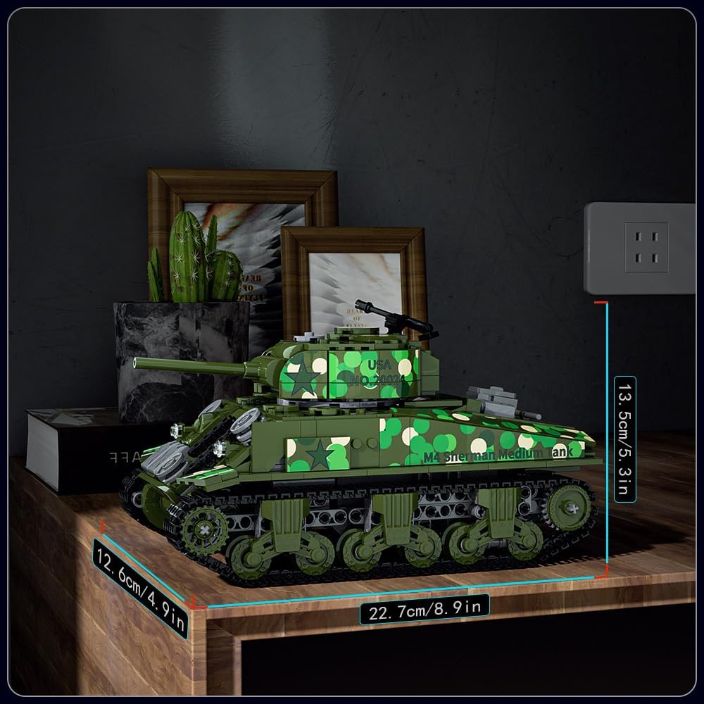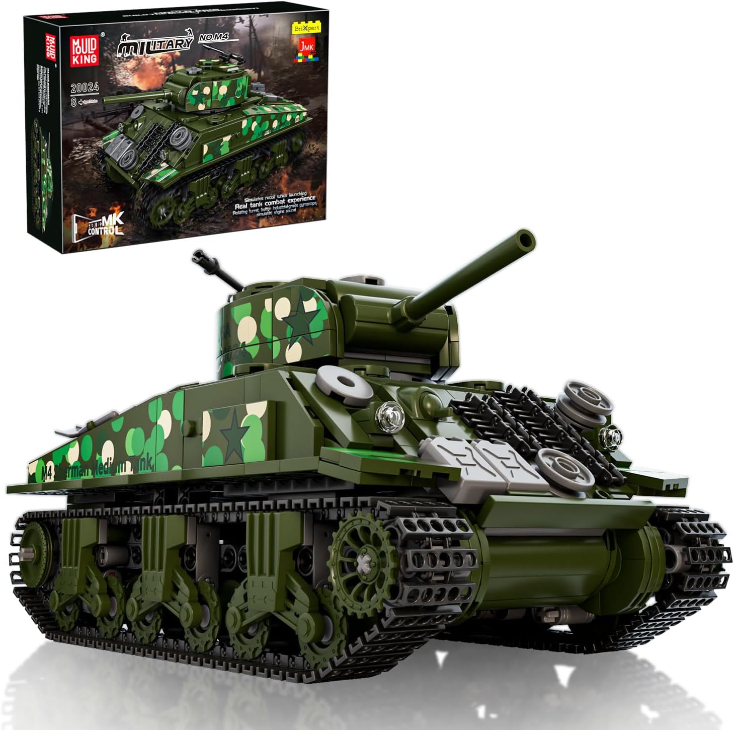 Mold King 20024 Технологични военни танкови строителни блокове Модел RC танк M4 Sherman Танк Дистанционно управление Затягащи строителни блокове Играчка Подарък за възрастни и тийнейджъри (961 части)