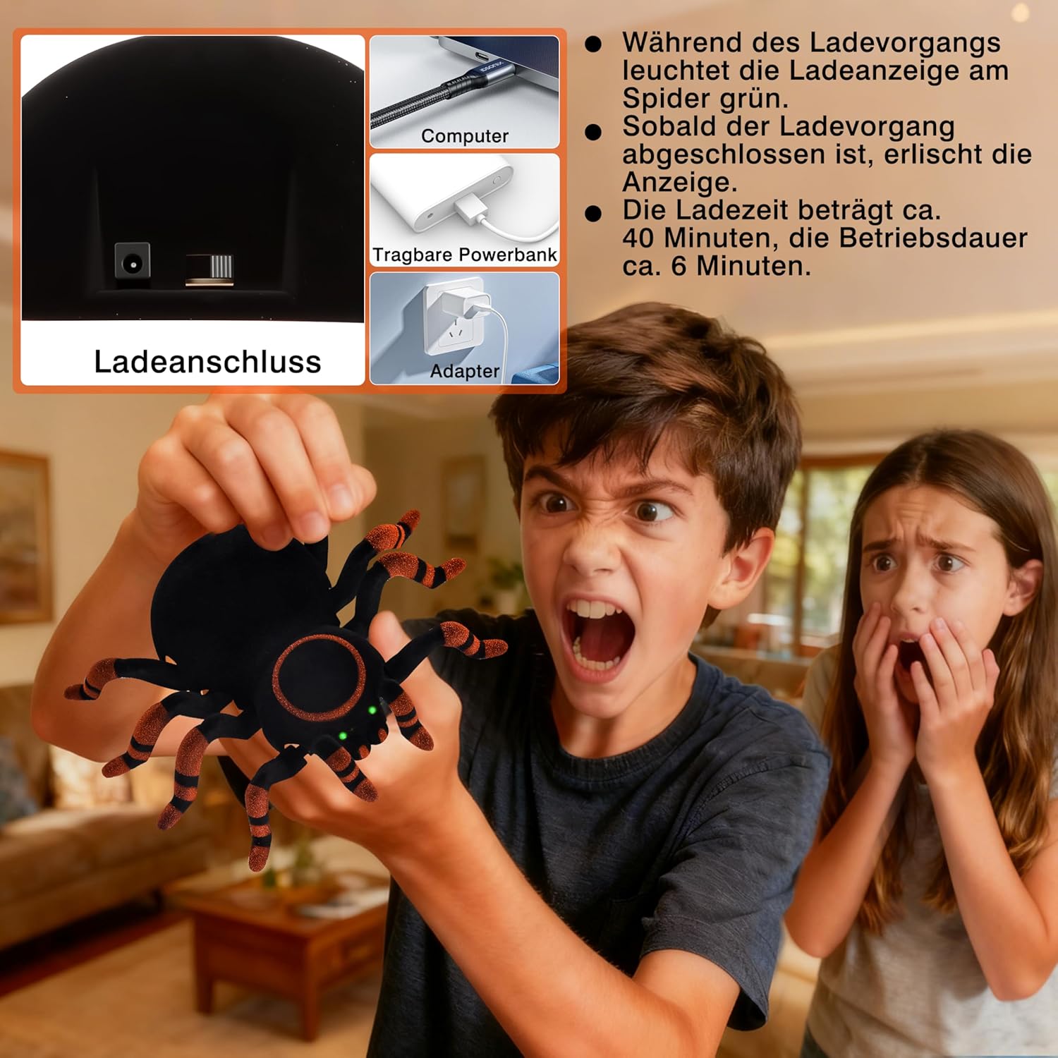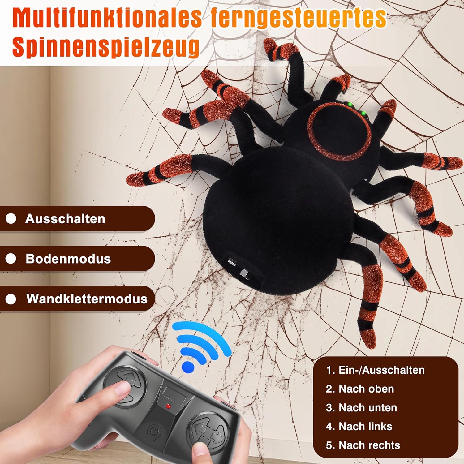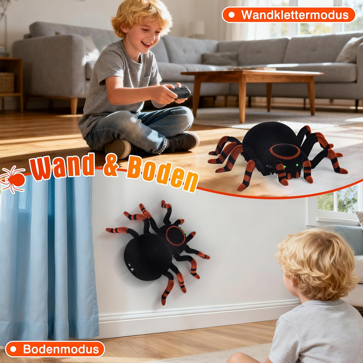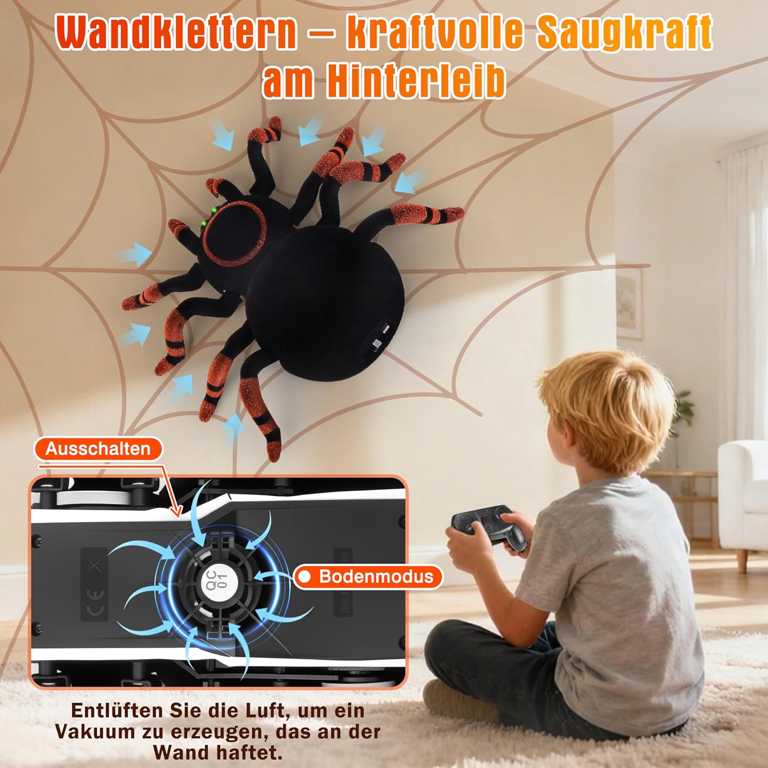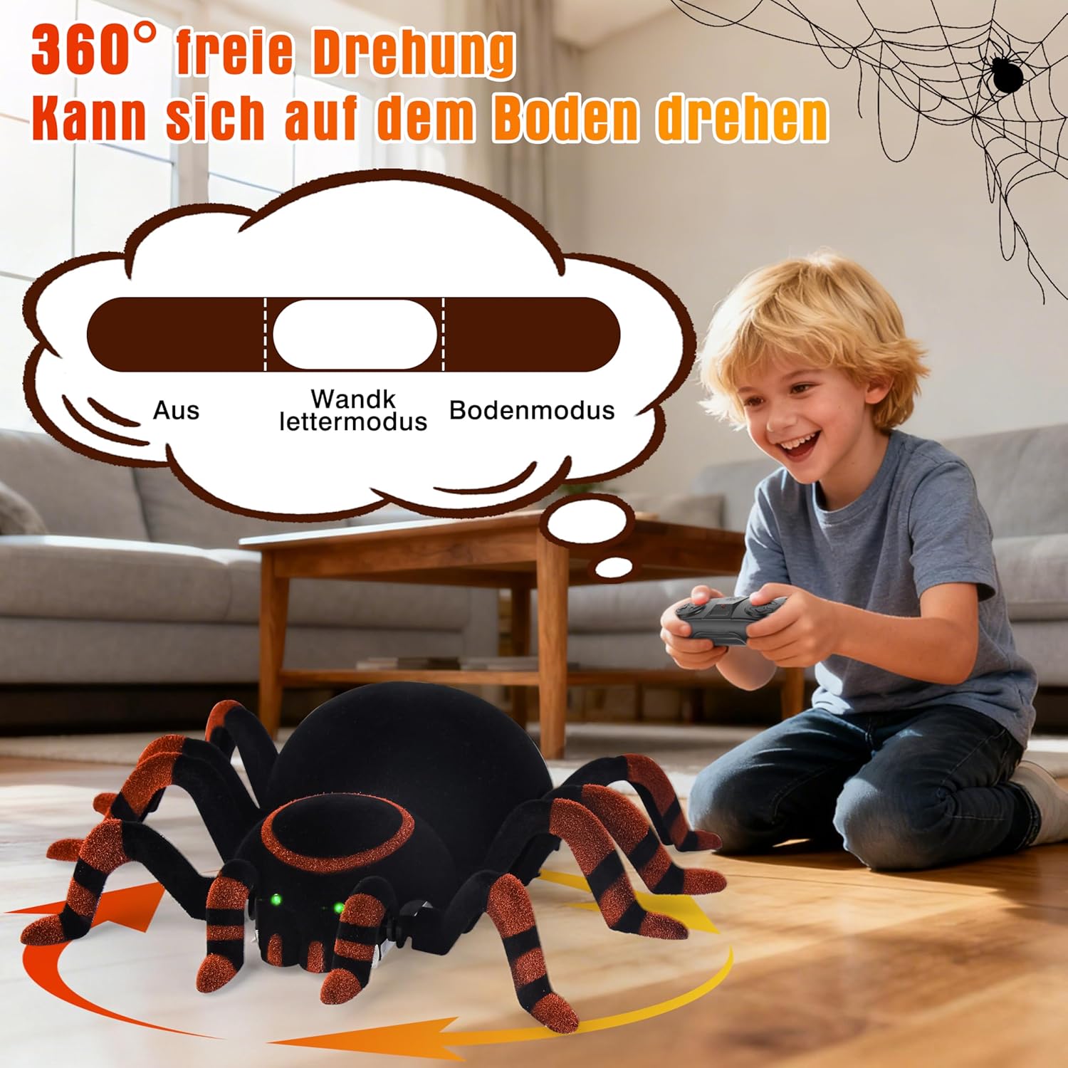 • Два режима на игра: паякът с дистанционно управление не само пълзи по пода, но и се катери по стени. Функцията за катерене използва аеродинамика и съпровожда действието със звуци на паяк - чудесно забавление за децата. Забележка: Бялата хартиена лента вътре не трябва да се отстранява.