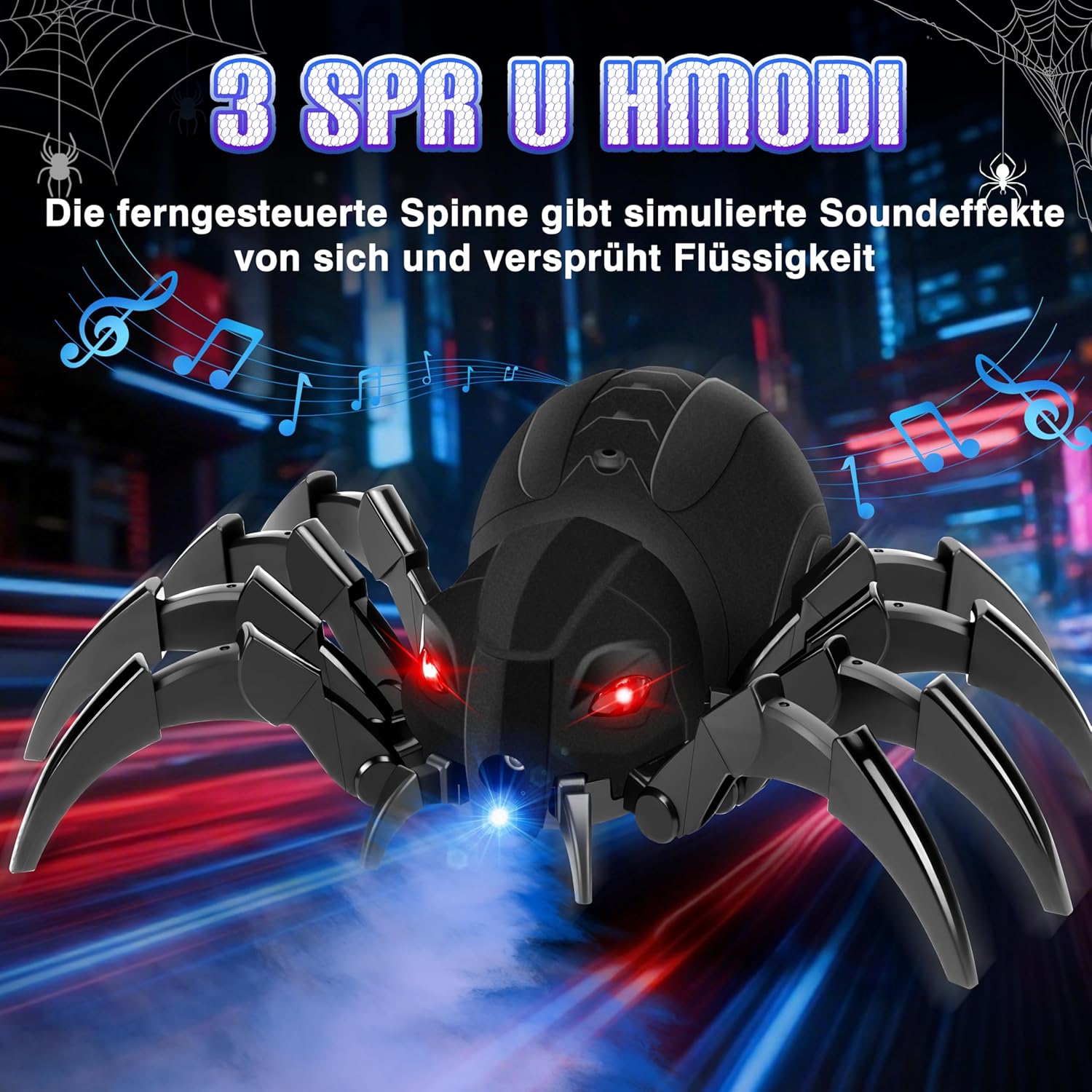 MOMOSTAR Играчка паяк с дистанционно управление от 6 години момчета и момичета Функция за пръскане, светещи очи и множество музикални режими Детска играчка с дистанционно управление 6+ години Момичета Подарък за момче 6-12 години