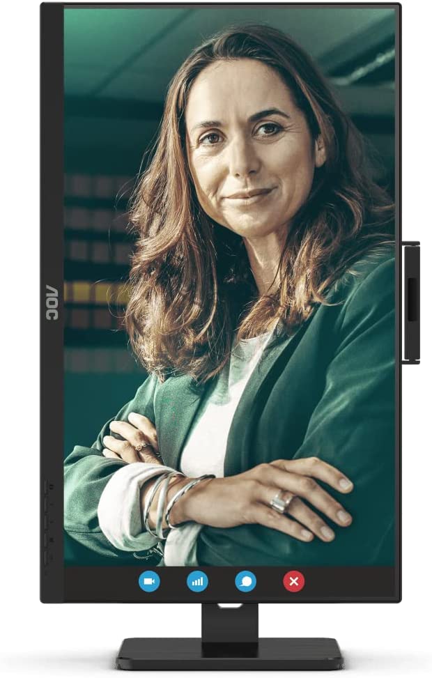 • AOC Quad-HD PC монитор с USB-C докинг станция и RJ45 конектор. 5-мегапикселова уеб камера, включително шумопотискащ микрофон и функция Windows Hello