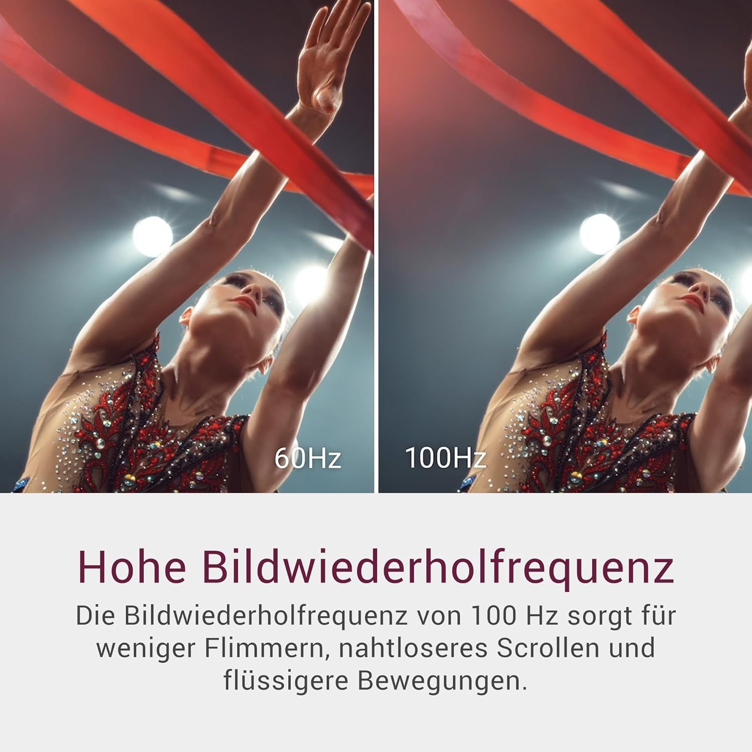 • ГЛАДЪК ДИСПЛЕЙ – Честотата на опресняване от 100 Hz намалява трептенето и осигурява безпроблемно превъртане и ясно движение – идеално за работа и ежедневна употреба.