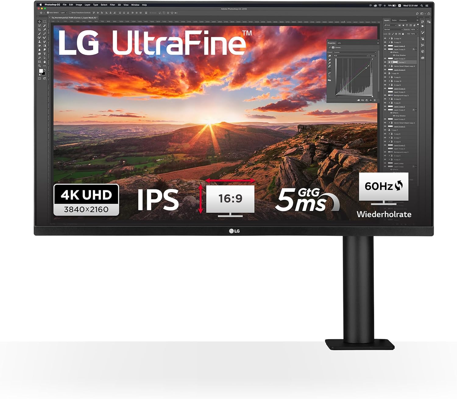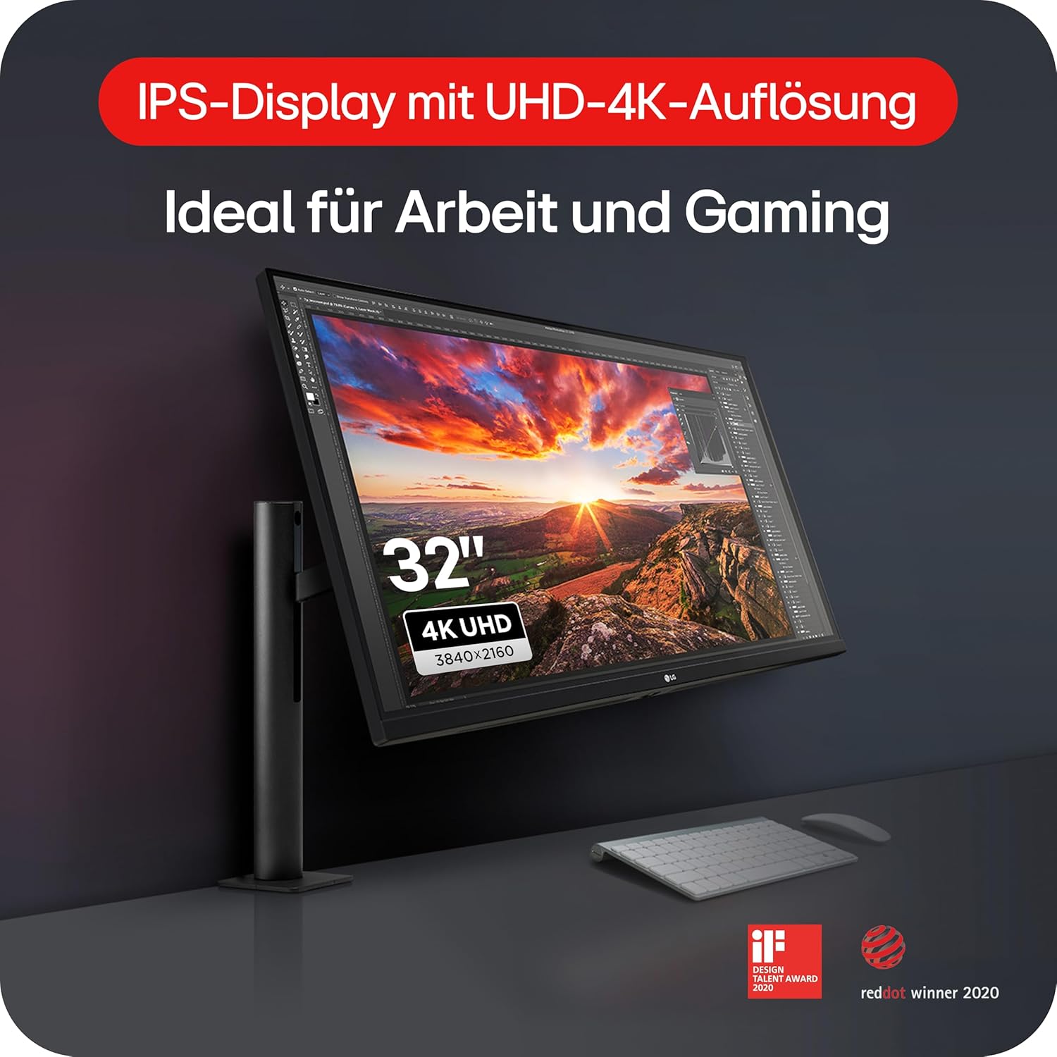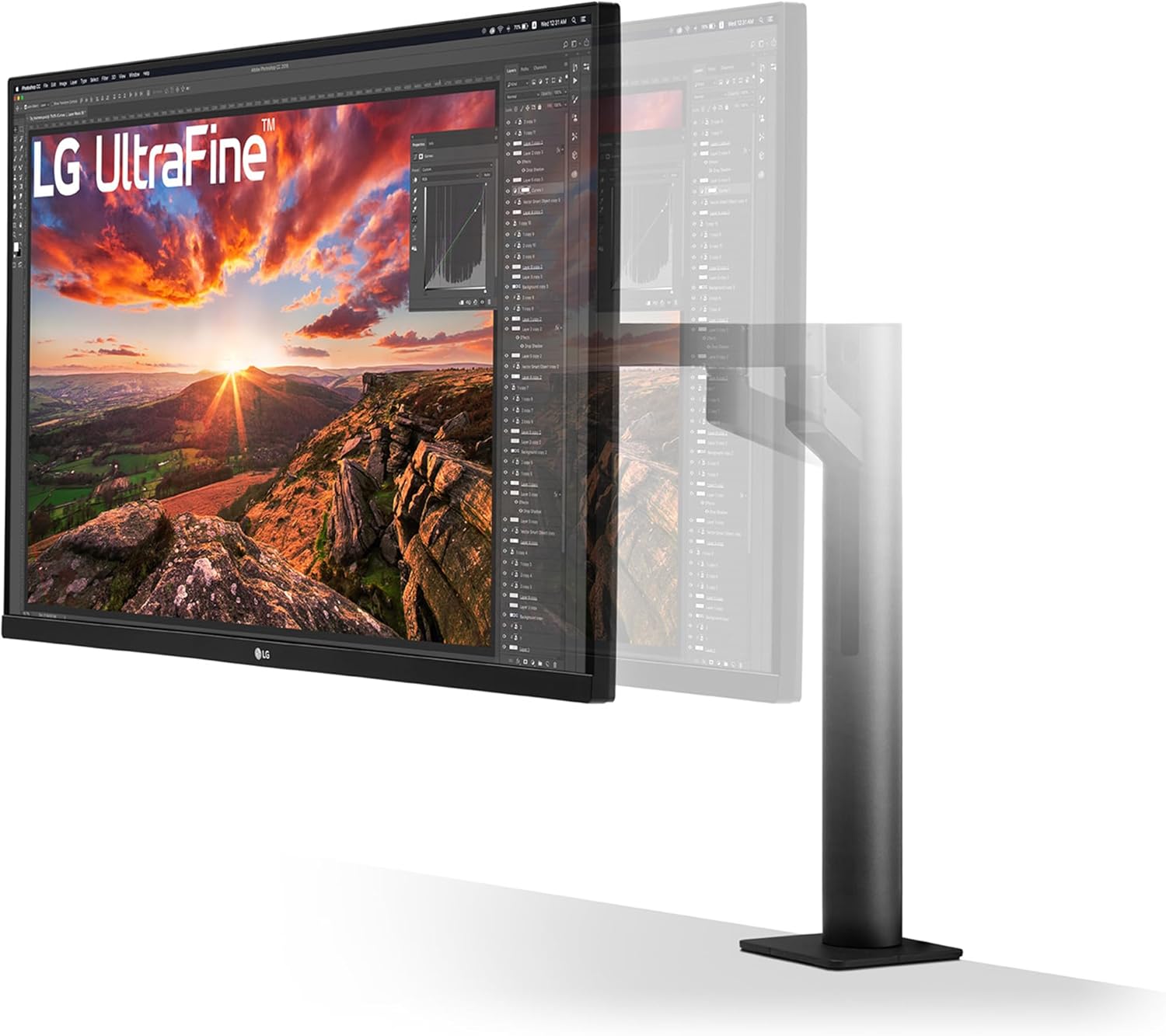 Монитор LG 32UN880K, 32-инчов Ultra HD 4K Ergo, IPS, 3840 x 2160, HDR 10, DCI-P3 95%, ергономична стойка, регулируема във всички посоки, стерео високоговорител 10 W