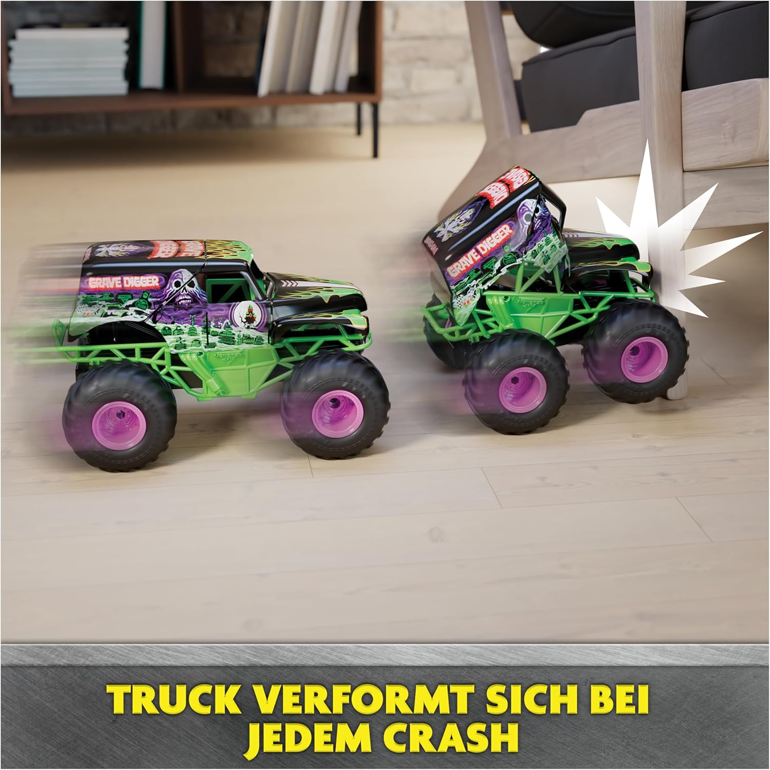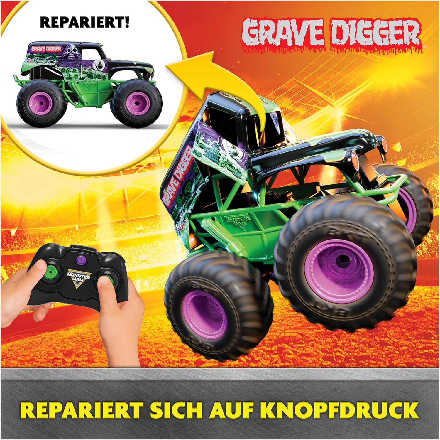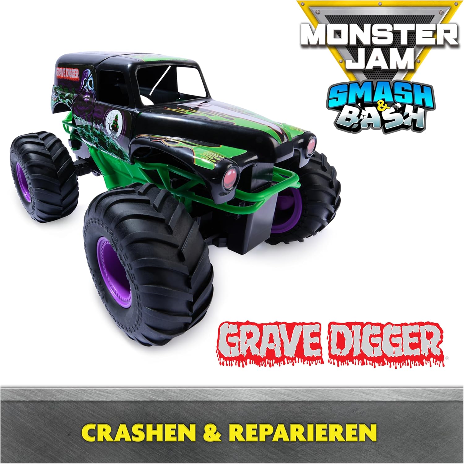 Monster Jam - Smash 'n Bash Grave Digger, Монстър камион с дистанционно управление, който се деформира при катастрофа и се поправя с натискане на бутон, 2.4GHz управление, възраст 4+