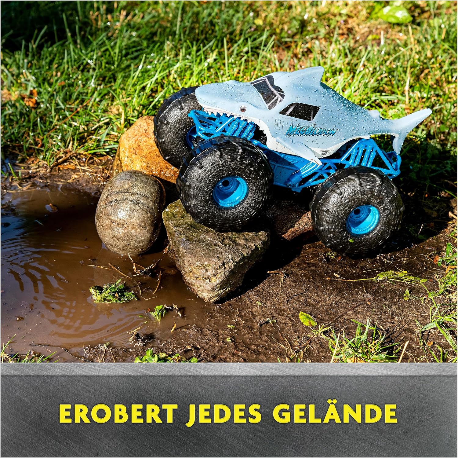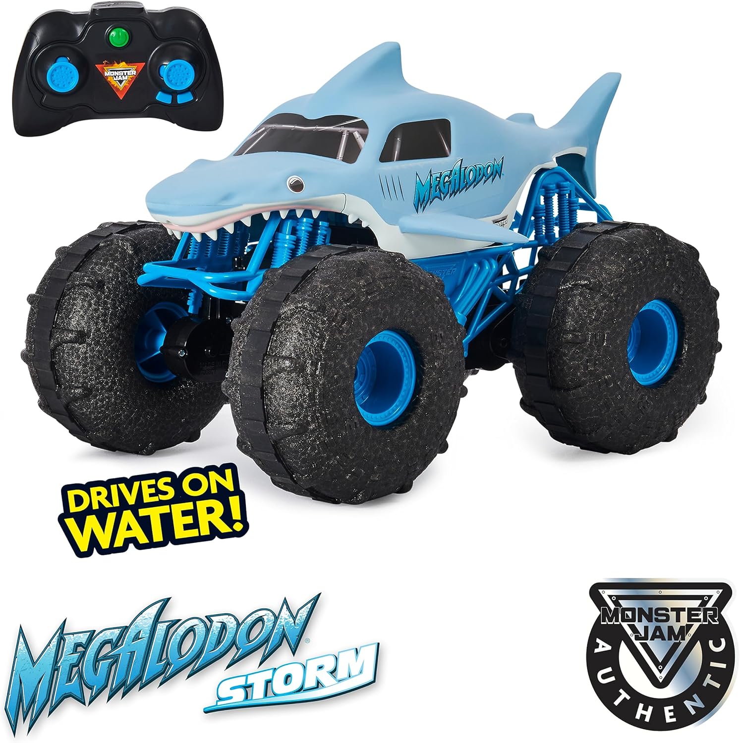 • Каране по вода: Водоустойчивата каросерия и специалните гуми осигуряват лесно движение във водата. А ако водачът желае, Megalodon Storm преминава към сушата без никакво прекъсване.