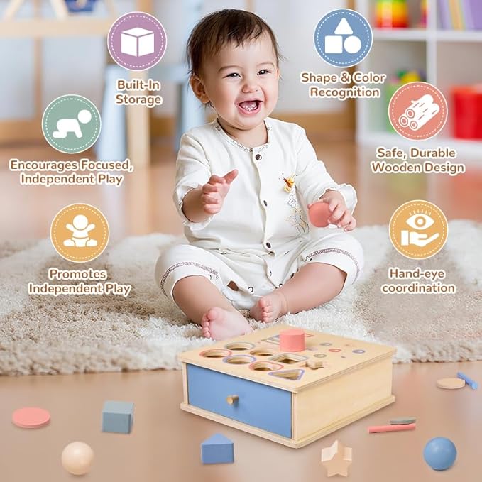 • Игриво учене от самото начало. Тази висококачествена играчка Монтесори за деца над 1 година е идеална за малки деца, за да откриват цветове и форми по игрив начин. Тя насърчава ранното обучение и предлага безопасно въведение в света на Монтесори.