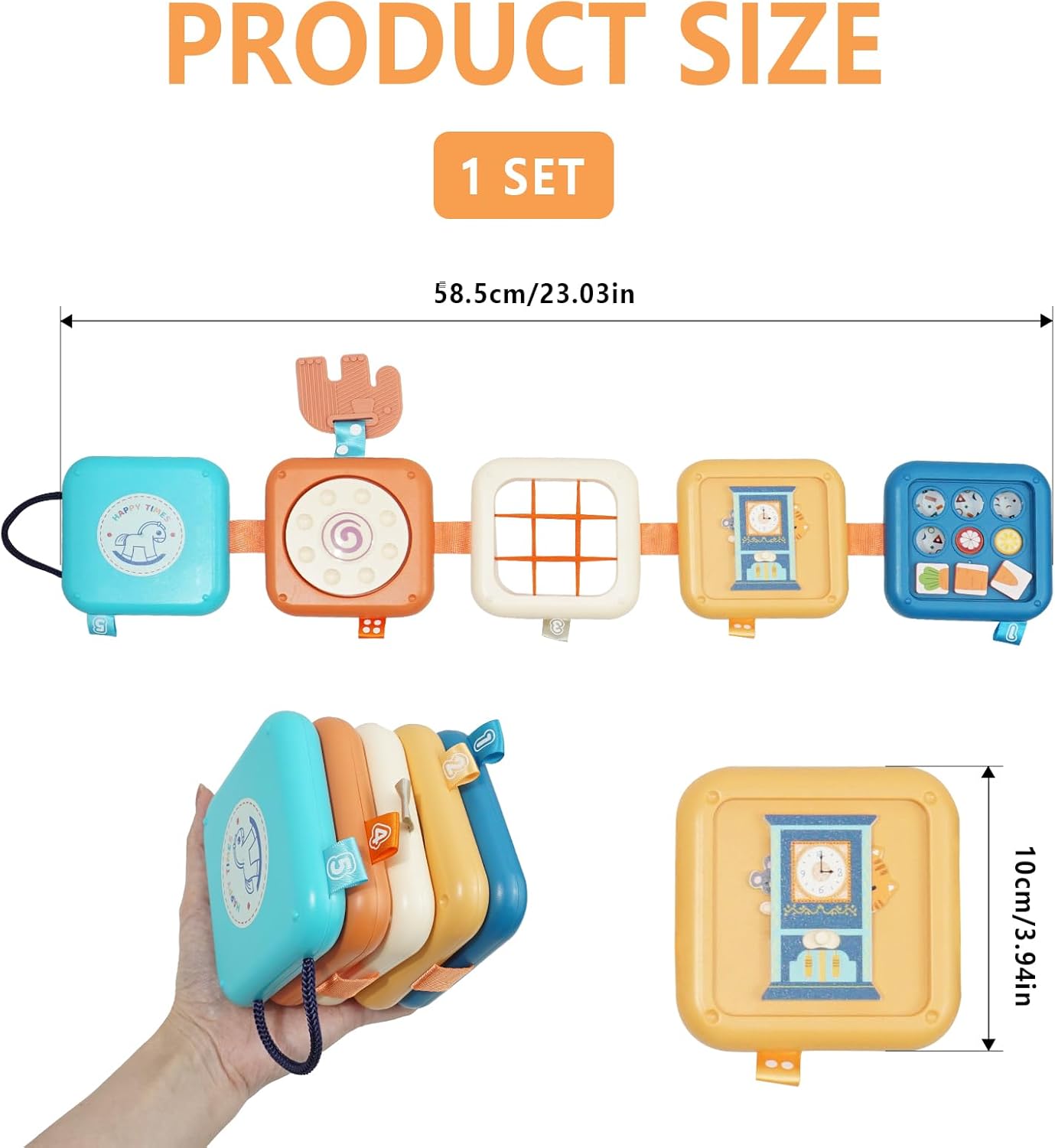 Нашата многофункционална играчка за пътуване за деца над 1 година е перфектният избор за родители, които търсят смислени занимания за своите малчугани, докато са в движение. Тази интерактивна дъска за бебета съчетава учене, забавление и безопасност в компактен дизайн. Изработена от висококачествена, издръжлива и нетоксична пластмаса, тя е с идеален размер за малки ръчички и гарантира безгрижна игра.