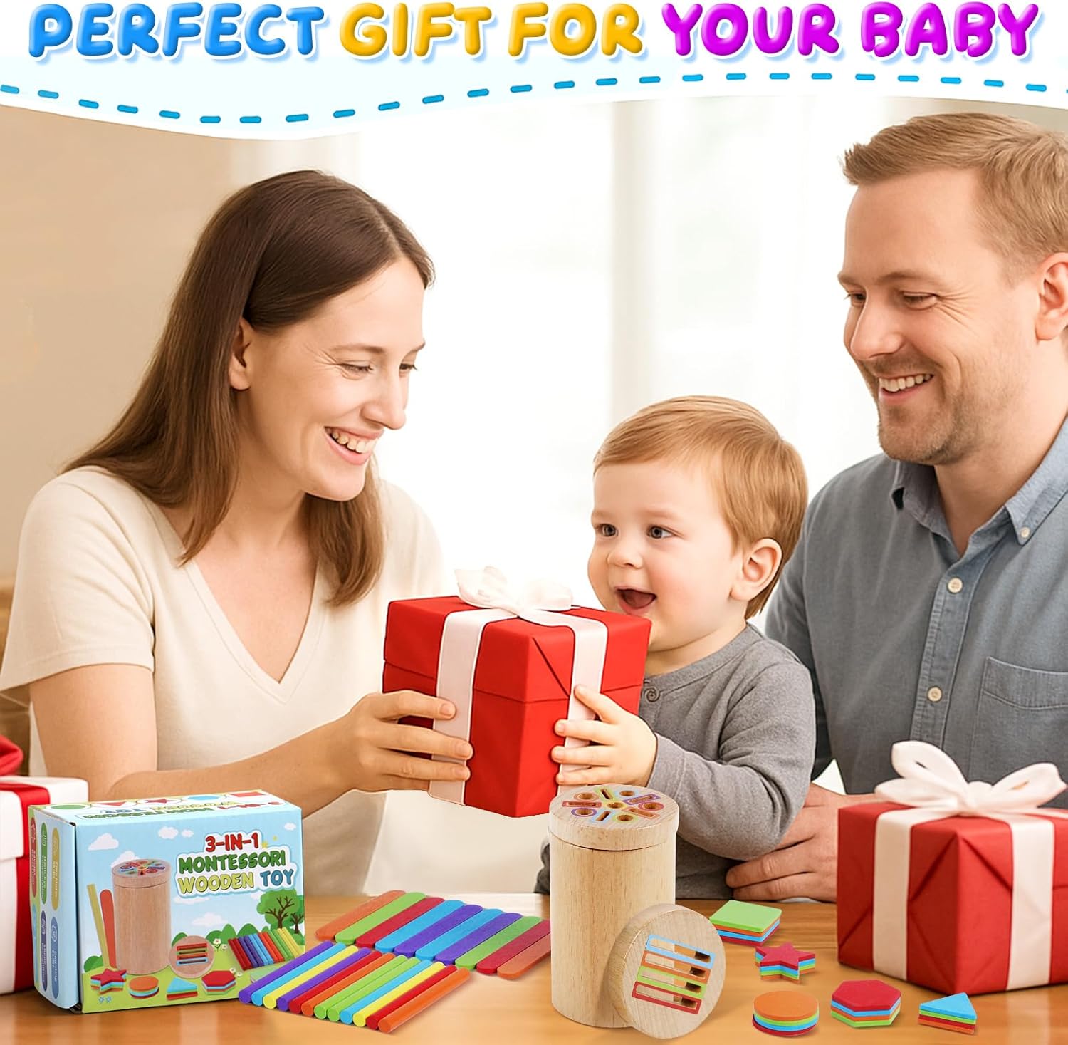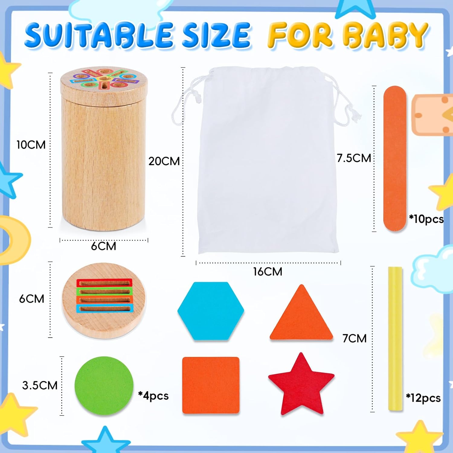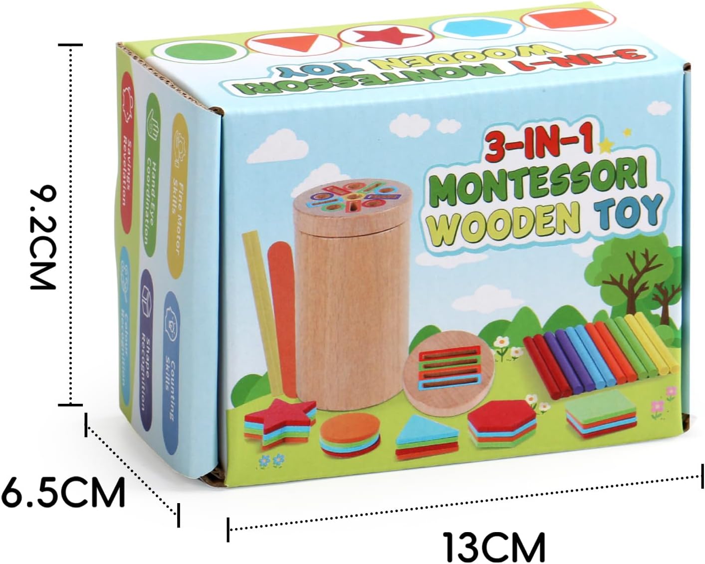 • 【Смислени подаръци за деца】 Тази играчка Монтесори за бебета на 3 и повече години се състои от дървен цилиндър с 2 различни капака, 12 цветни пръчици, 10 пръчици за сладолед и 20 дървени блокчета с различна форма. Игрива и цветна, тя е идеалният подарък за деца на възраст 1-2 години. За родители и учители, които искат да насърчат малките деца да учат чрез игра, тази цветна играчка за сортиране и подреждане за 1-2 годишни е идеален подарък за рождени дни, Ден на детето, Великден или Коледа!