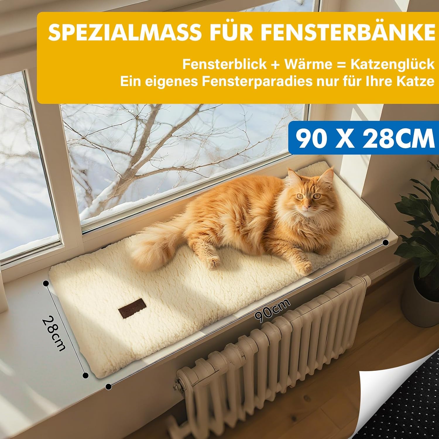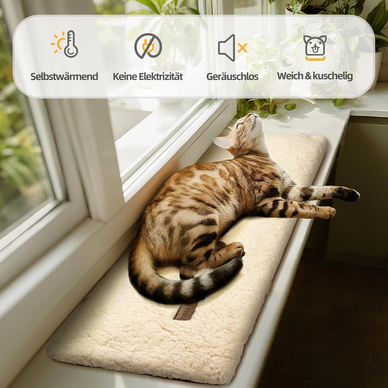 Mora Pets Котешки шезлонг за прозорец Котешко легло за перваза на прозореца Самозагряващо се котешко одеяло Отоплително одеяло за котки Самозагряващо се одеяло Електрическо одеяло без електричество Котешки шезлонг за прозорец Нехлъзгав и мек 90 x 28 см