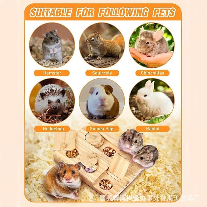 • Интерактивна играчка за морско свинче: Нашата играчка за хамстер е проектирана да бъде по-голямо предизвикателство. Тя осигурява забавни физически и психически предизвикателства за хамстерите. Тренирайте обонянието на вашия домашен любимец, помислете за решаване на проблеми и интерактивни игри за чинчили, които се забавляват да се хранят, докато движат плъзгача с носа или лапите си. Малките животни абсолютно обожават това вълнуващо занимание.