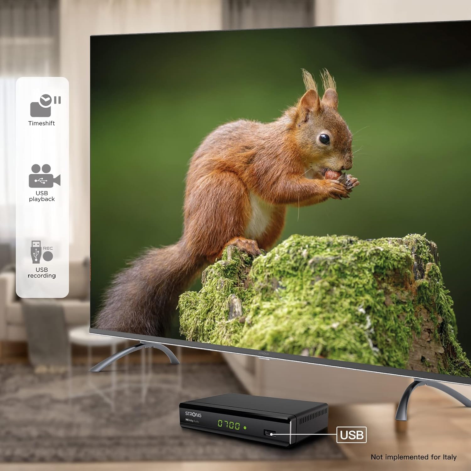 • Множество режими на свързване: тунер вход, HD, SCARTTV, цифрово аудио, USB, Ethernet. Функцията за запис не е активна в Италия.