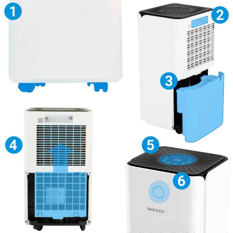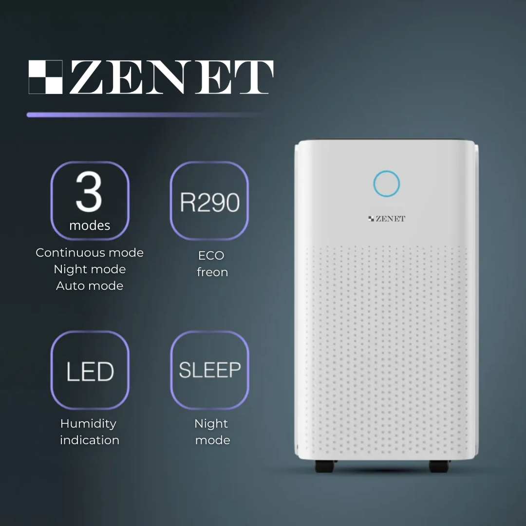 Zenet ZET-203 разполага с усъвършенствана система за филтрация с три слоя: първичен филтър за задържане на големи частици като прах и косми, HEPA филтър клас Н13, който улавя до 99,95% от микроскопични частици, и филтър с активен въглен, който премахва миризми, бактерии и вредни газове. Той не просто "попива" влагата като гъба, но и почиства съвършено въздуха в стаята.