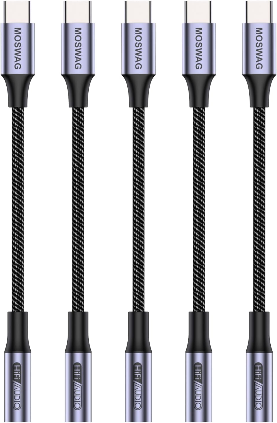 MOSWAG USB Type C към 3.5 мм жак за слушалки, аудио USB C към Aux адаптер за iPhone 16 Pro Max/16 Pro/16 Plus/16/15 Pro/15, Samsung Galaxy S24 S23 S22 S21 S20, Huawei, Pixel, iPad и други