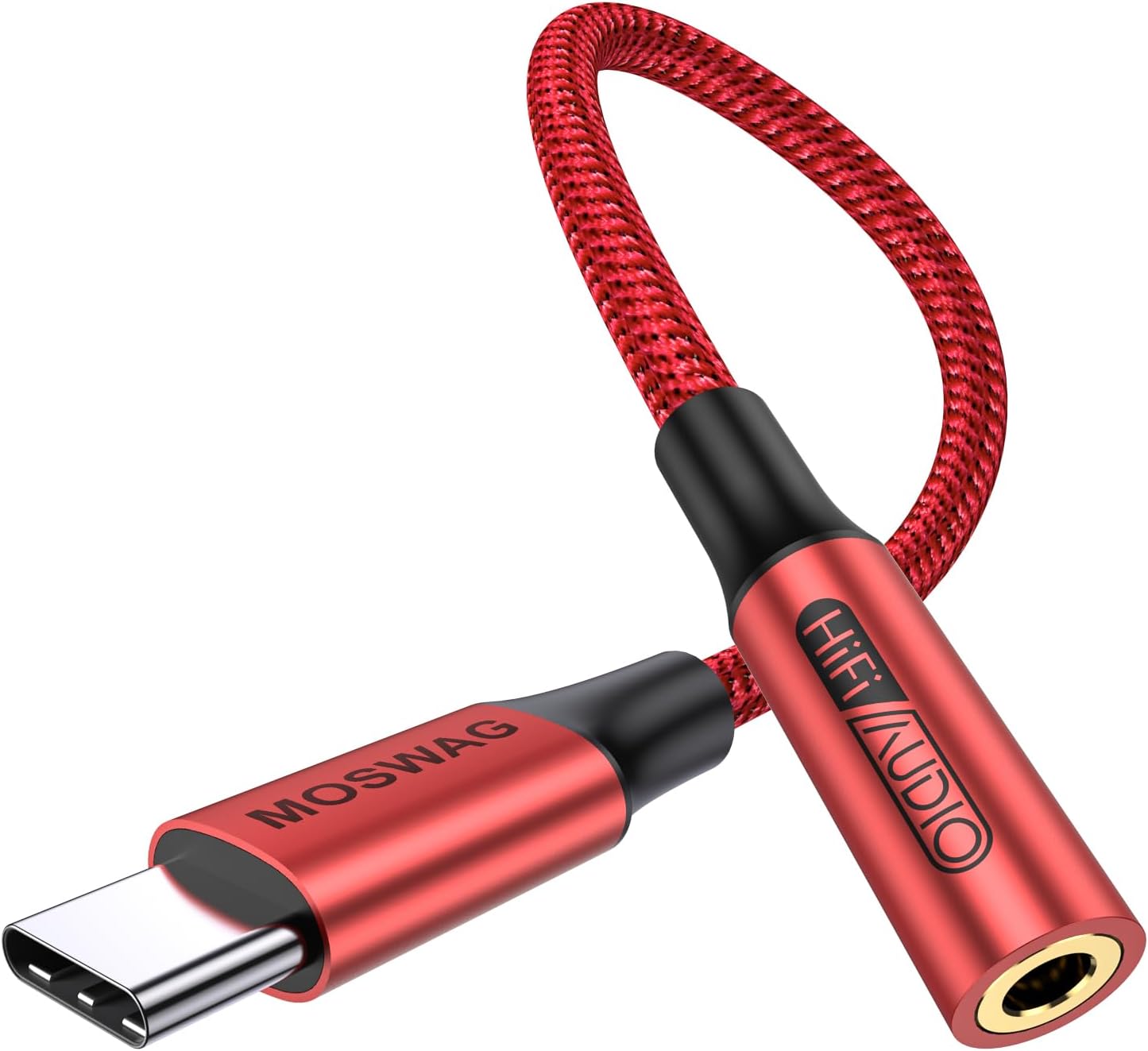 MOSWAG USB Type C към 3.5 мм жак за слушалки, аудио USB C към Aux адаптер за iPhone 16 Pro Max/16 Pro/16 Plus/16/15 Pro/15, Samsung Galaxy S24 S23 S22 S21 S20, Huawei, Pixel, iPad и други