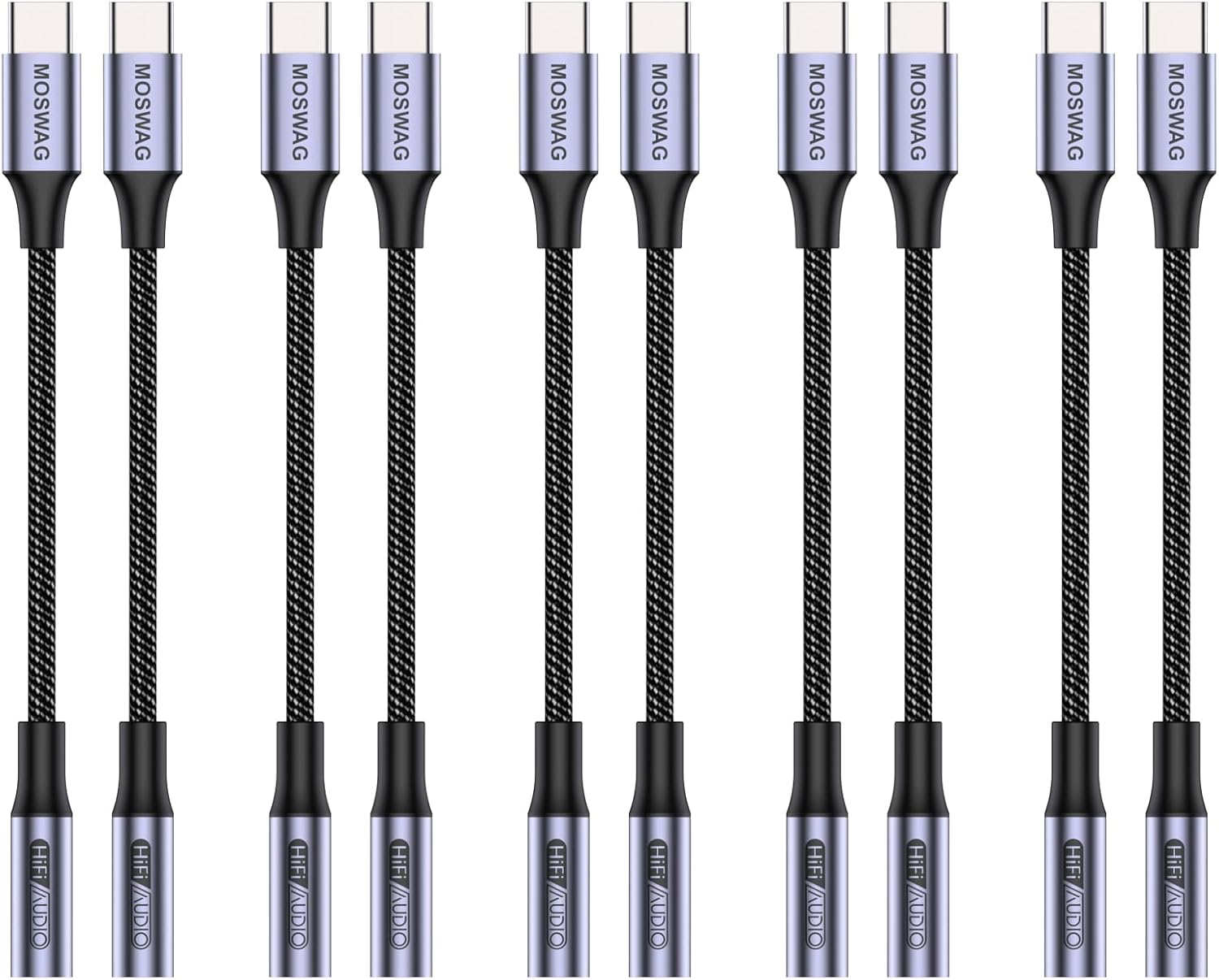 MOSWAG USB Type C към 3.5 мм жак за слушалки, аудио USB C към Aux адаптер за iPhone 16 Pro Max/16 Pro/16 Plus/16/15 Pro/15, Samsung Galaxy S24 S23 S22 S21 S20, Huawei, Pixel, iPad и други