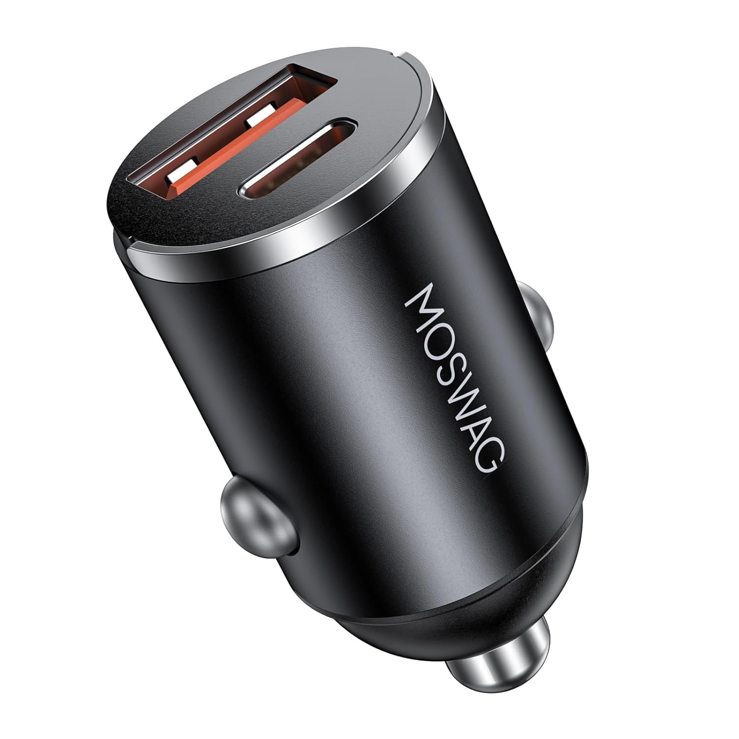 MOSWAG USB зарядно за запалка, мини зарядно за кола USB C QC 3.0, бързо зарядно за кола с два порта за iPhone 16 15 Samsung Galaxy и други