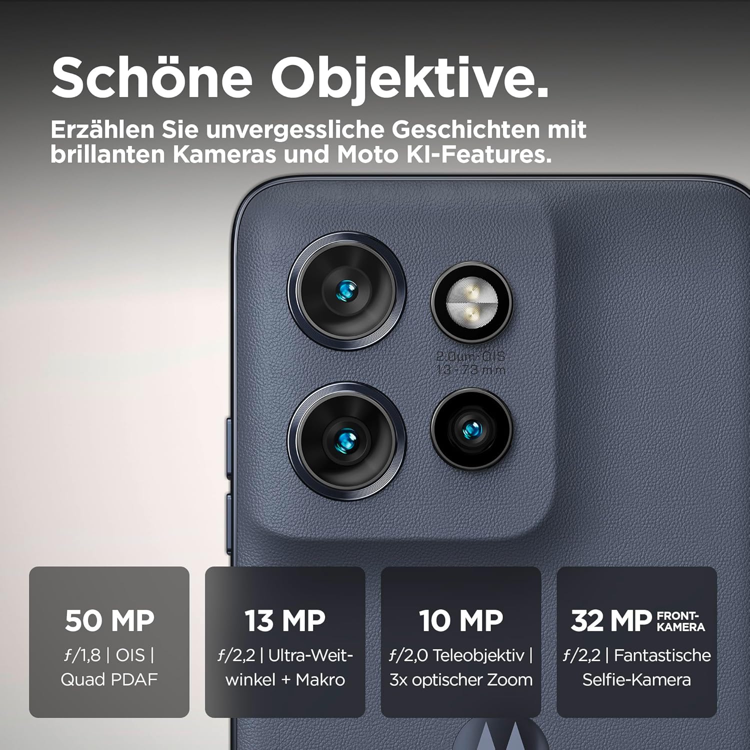 • Най-добри резултати благодарение на Moto AI. Благодарение на Moto AI можете да постигнете оптимални снимки и видеоклипове. Получете по-живи и реалистични резултати с обработката на изображенията с Moto AI. И снимайте плавни видеоклипове с всяко движение благодарение на адаптивната стабилизация на изображението, контролирана от Moto AI.