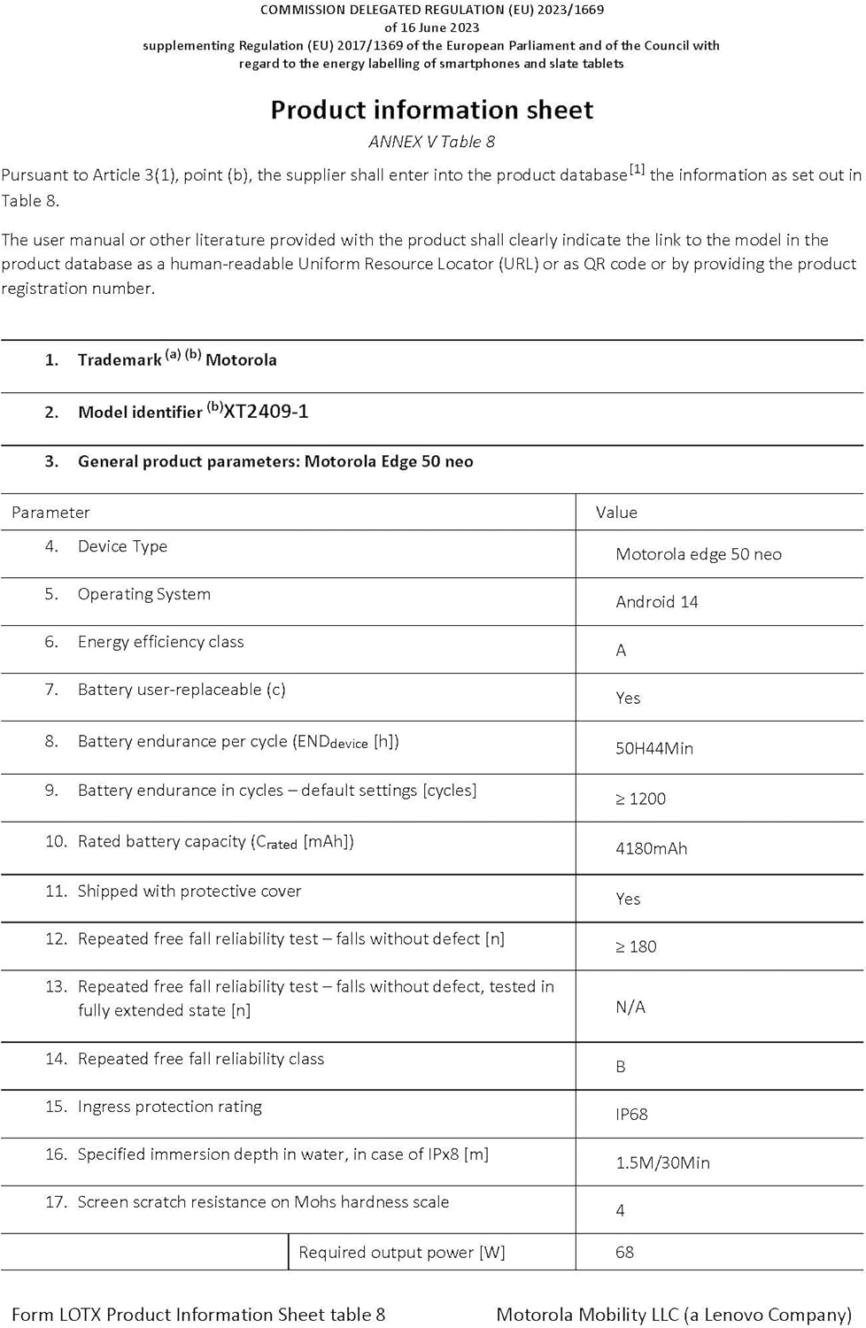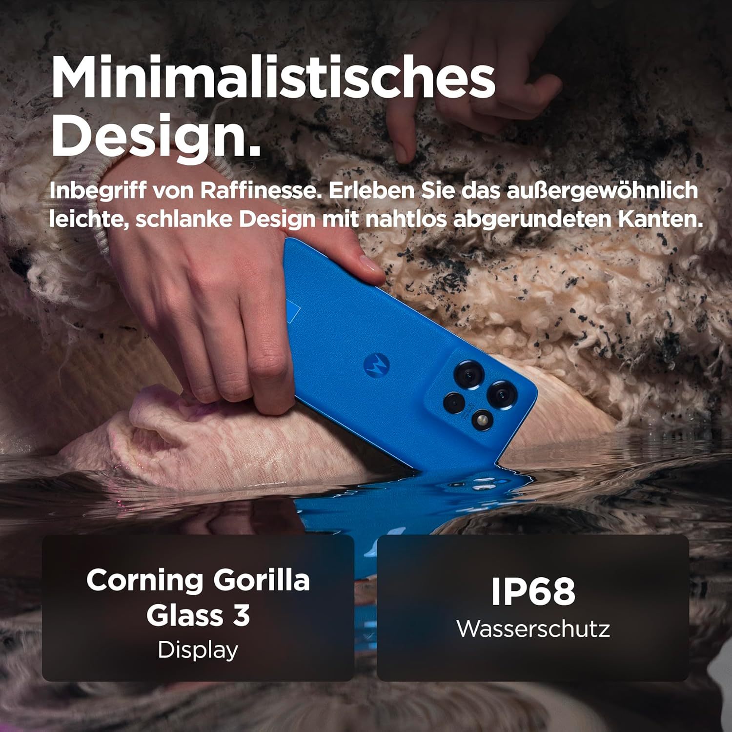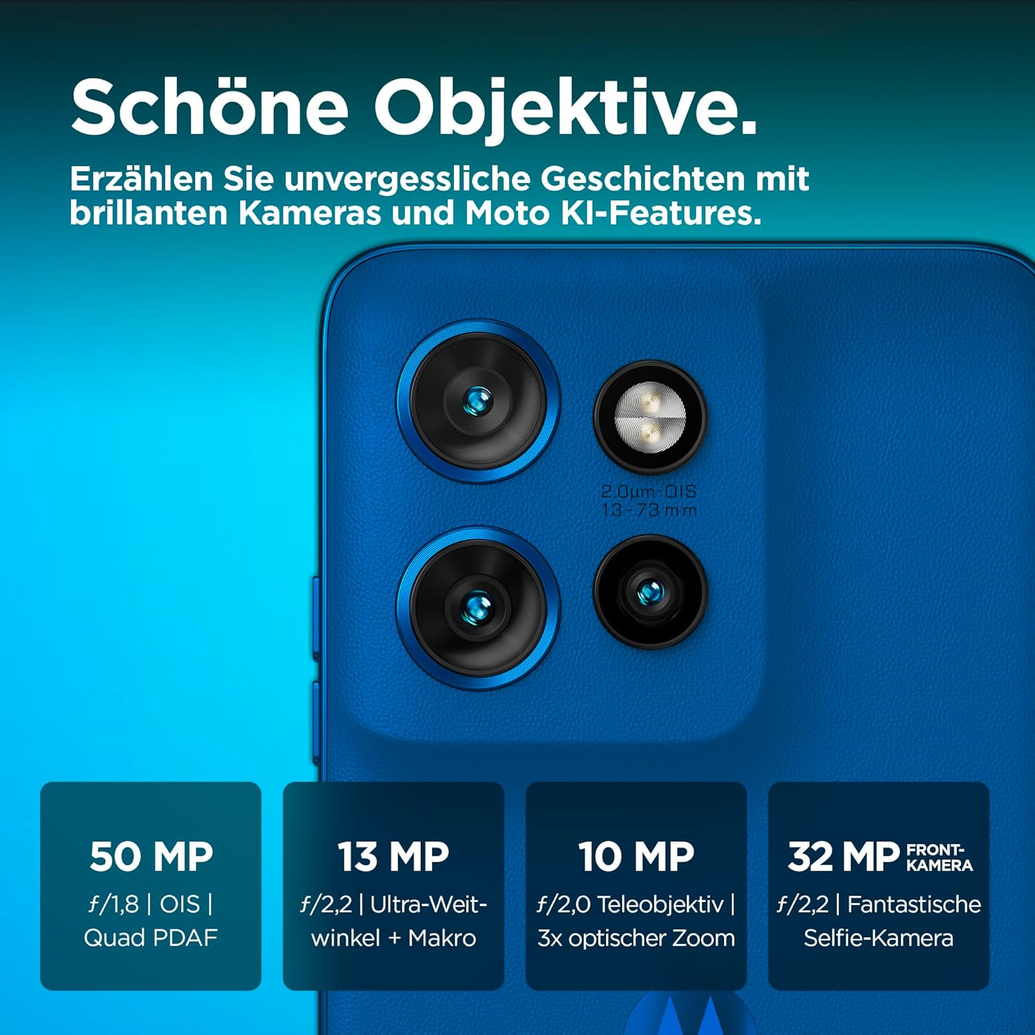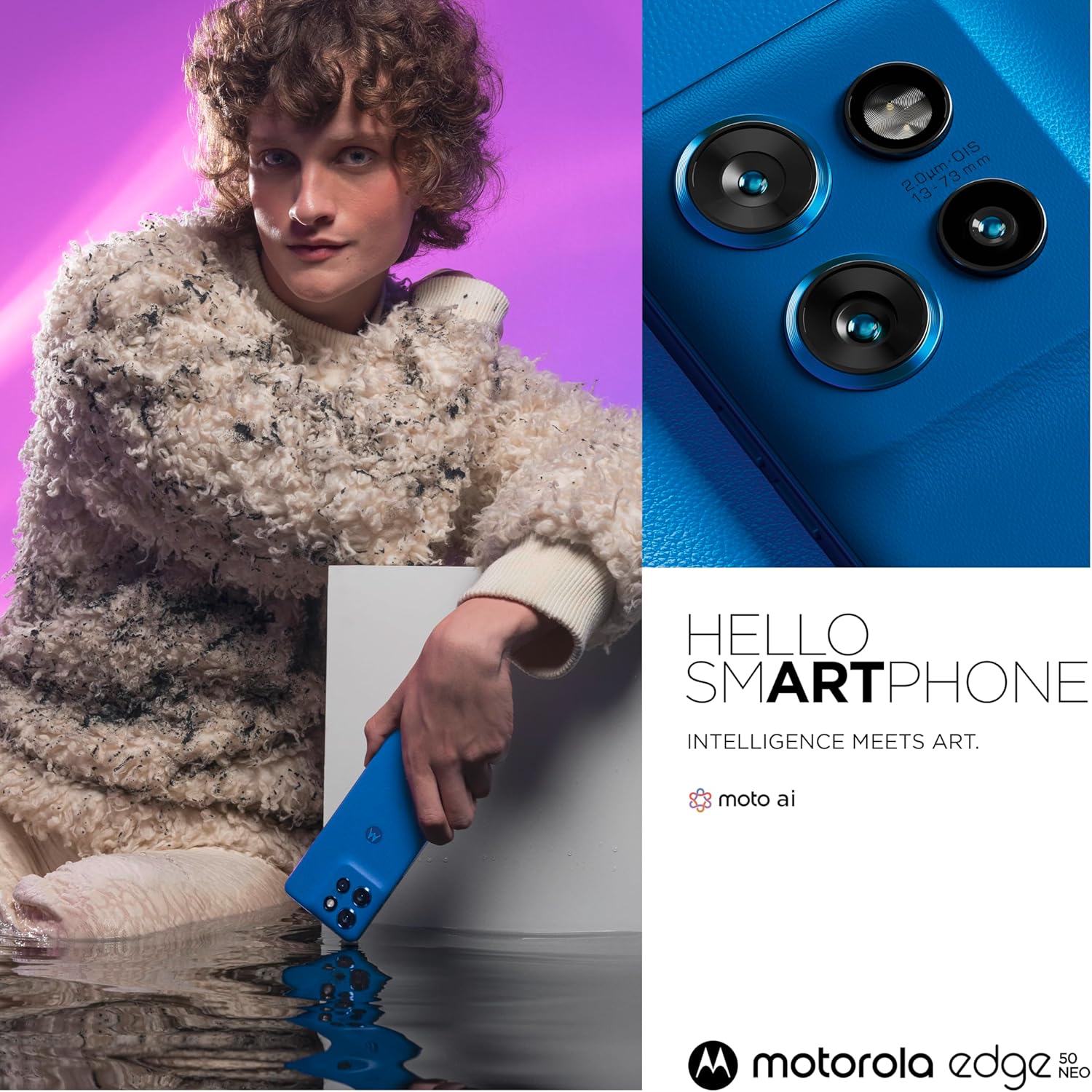 Motorola edge50 neo смартфон 6.36" Super HD дисплей, 50MP камера с Moto AI 8/256GB 4310mAh Android 14 Nautical Blue (веган изкуствена кожа) + защитен калъф