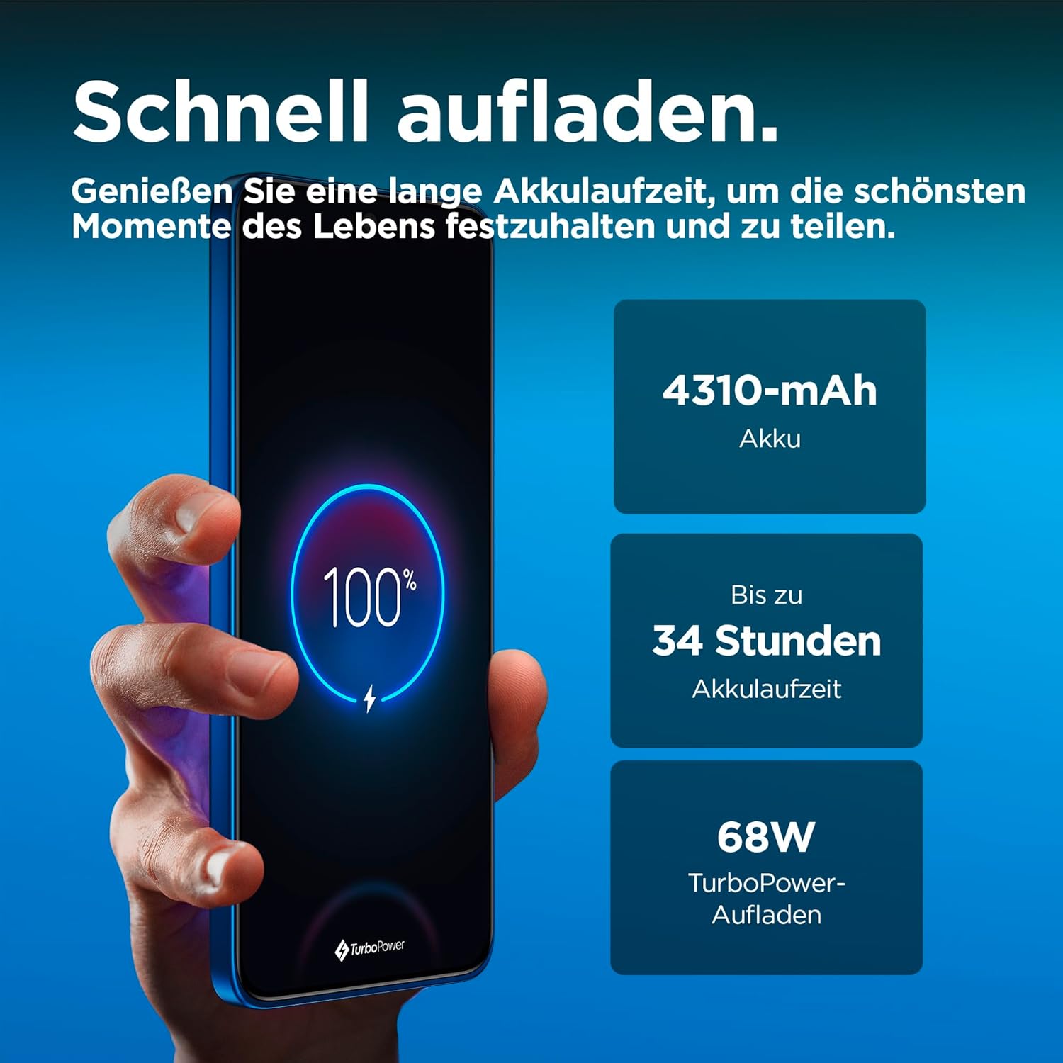 • 68W TurboPower зареждане. Само след няколко минути зареждане, имате батерия, за да бъдете креативни през целия ден без прекъсване. Или използвайте безжично зареждане (до 15W). Зарядната станция се продава отделно.