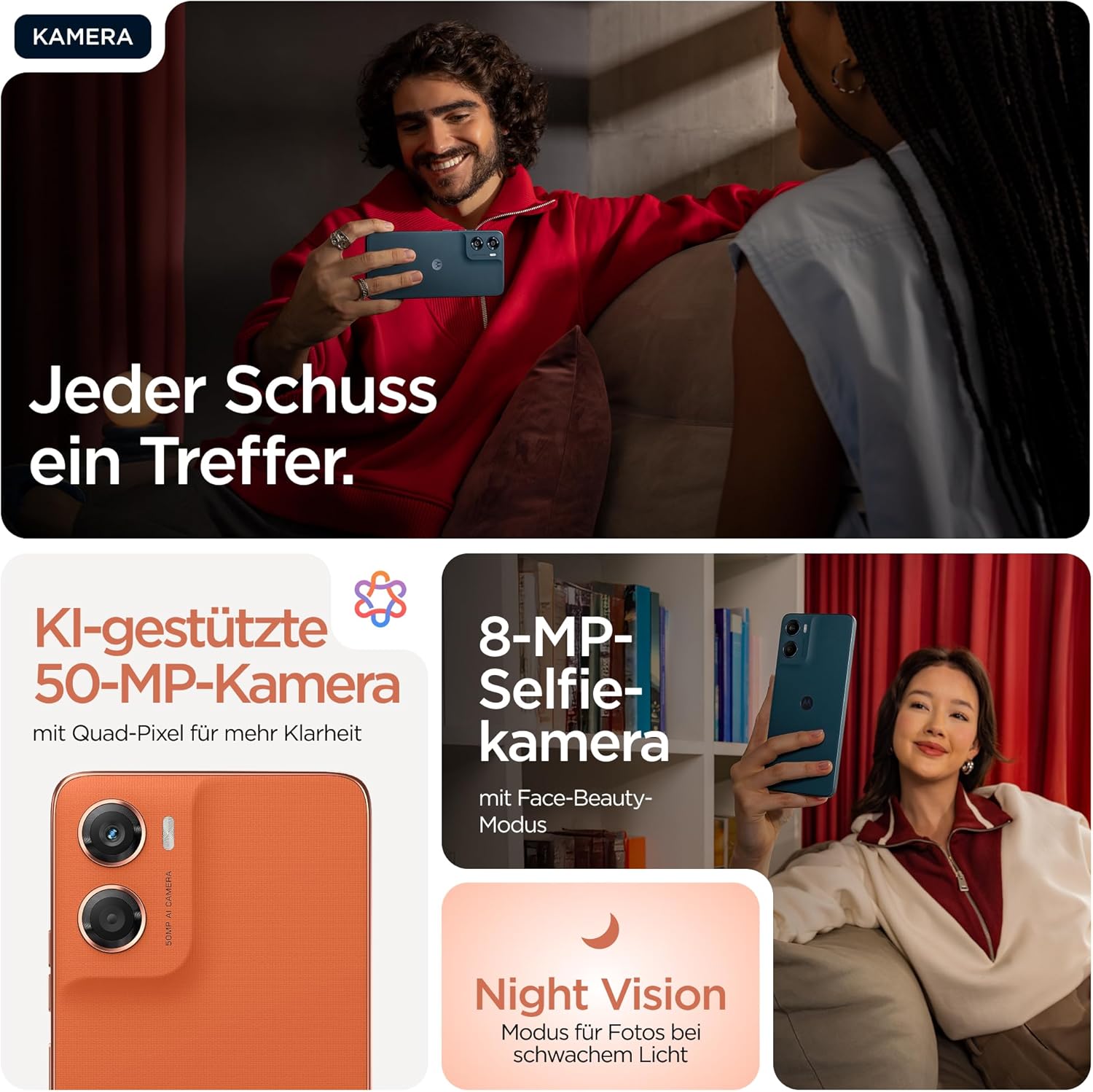 • Изключителни снимки благодарение на Sony LYTIA; правете зашеметяващи снимки с 50MP камерата Sony LYTIA 600 с поддръжка на Moto AI и снимайте без усилие като професионалист.
