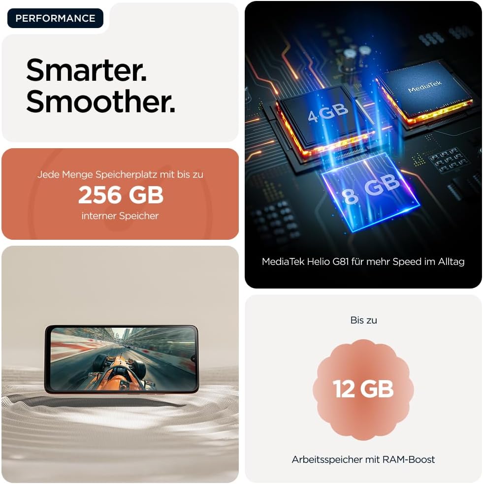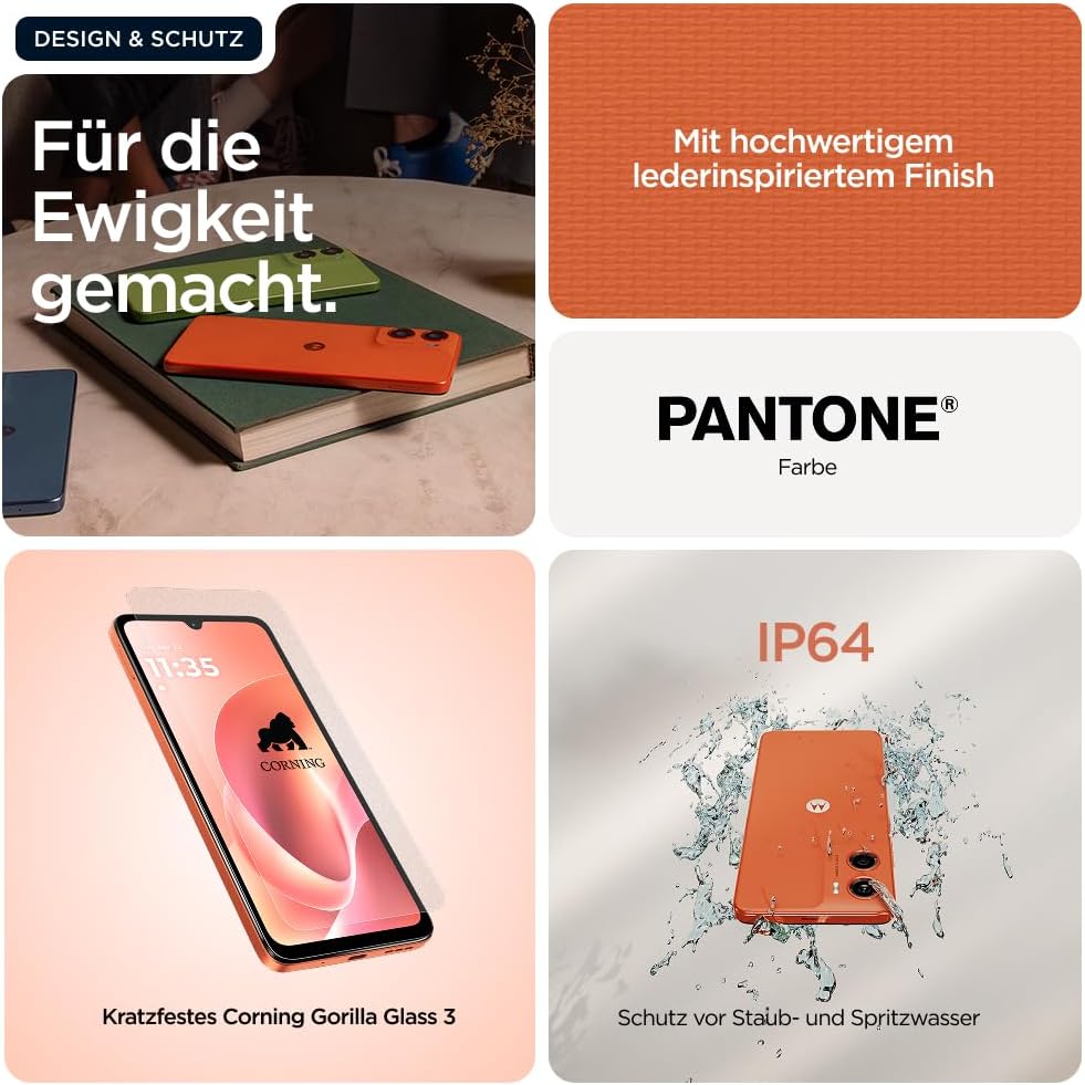 Motorola Moto g06 [Устойчив на надраскване 6.88" HD+ дисплей с Corning Gorilla Glass 3 Водоустойчива 50MP камера 4/256GB 5100mAh TurboPower зареждане] Pantone Arabesque + защитен калъф