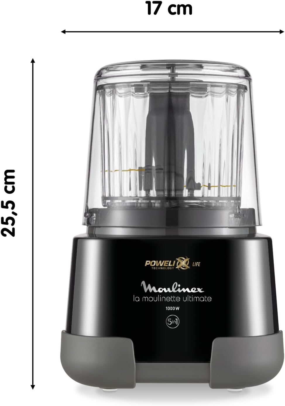 Moulinex La Moulinette Ultimate DP810810 Електрическа чопърка, 350 г / 550 мл, капацитет, 5 функции, 1000 вата, черна